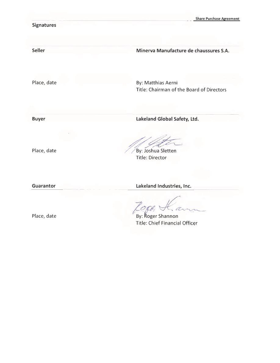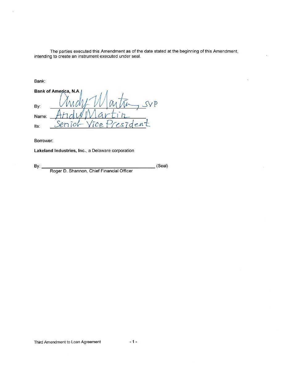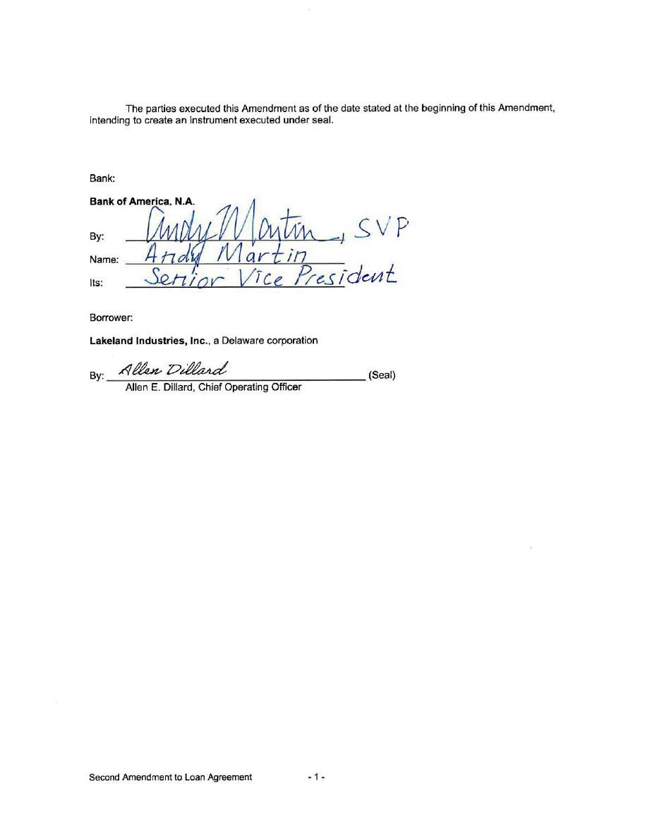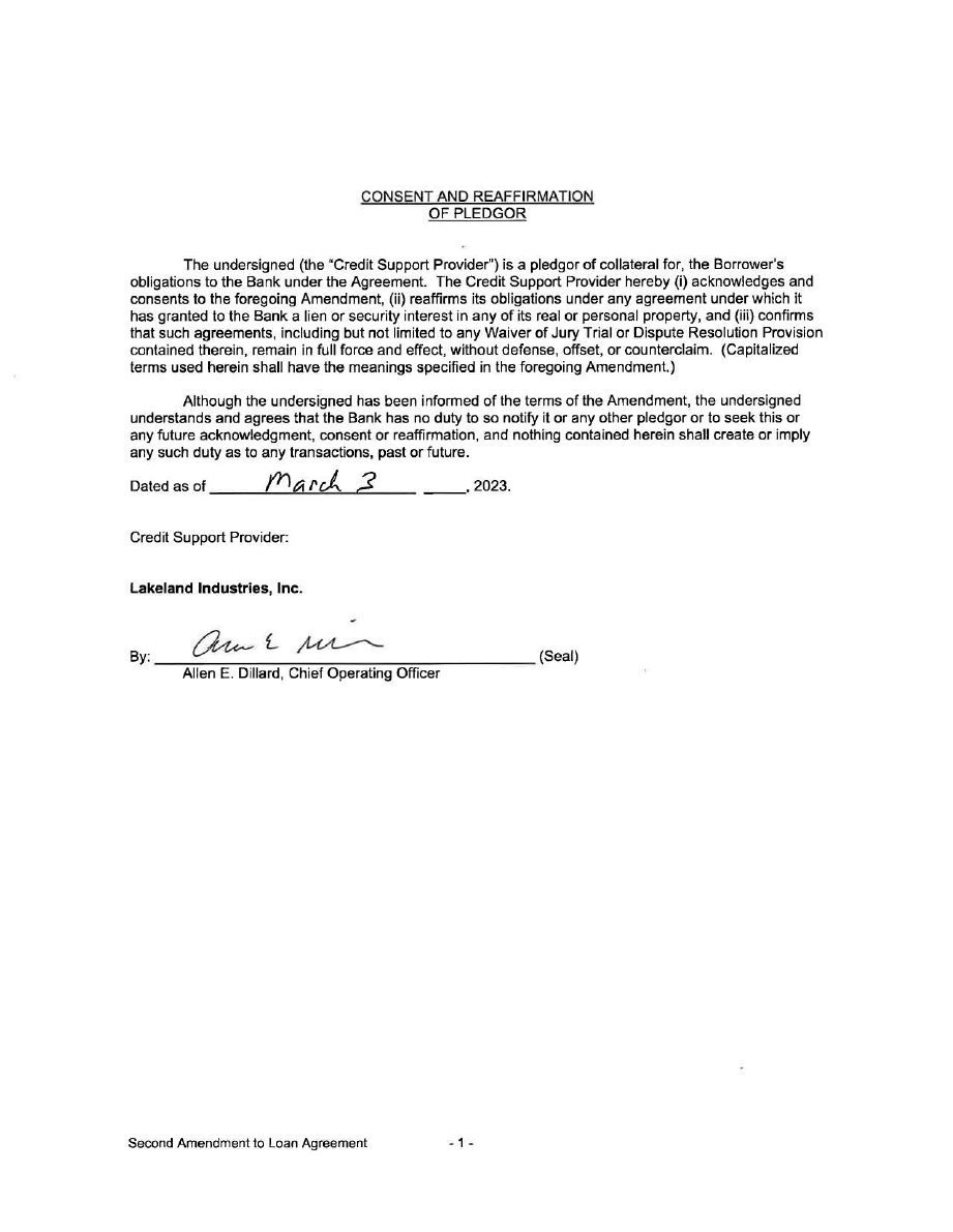 By signing below, the undersigned acknowledges and confirms that the undersigned has received and reviewed a copy of the Lakeland Industries, Inc. Compensation Recoupment Policy (the “Policy”). Capitalized terms used but not otherwise defined in this Acknowledgment Form (this “Acknowledgment Form”) shall have the meanings ascribed to such terms in the Policy.