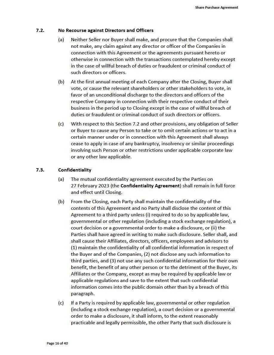 11. Other Recoupment Rights; Company Claims. The Board intends that this Policy will be applied to the fullest extent of the law. This Policy should be considered as a supplement to any other clawback policy in effect now or in the future at the Company or any other member of the Company Group, and if such other policy provides that a greater amount of compensation shall be subject to clawback, such other policy shall apply to the amount in excess of the amount subject to clawback under this Policy. Any right of recoupment (or right to apply a forfeiture) under this Policy is in addition to, and not in lieu of, any other remedies or rights of recoupment (or forfeiture) that may be available to the Company Group under applicable law, regulation, or rule or pursuant to the terms of any similar policy in any employment agreement, compensation plan or program, award agreement, or similar document and any other legal remedies available to the Company Group, in each case to the extent permitted under the listing rules of the Exchange and in compliance with (or pursuant to an exemption from the application of) Section 409A of the Code. Nothing contained in this Policy, and no recoupment, recovery, or forfeiture as contemplated by this Policy, shall limit any claims, damages, or other legal remedies the Company Group may have against a Covered Person arising out of or resulting from any actions or omissions by the Covered Person.