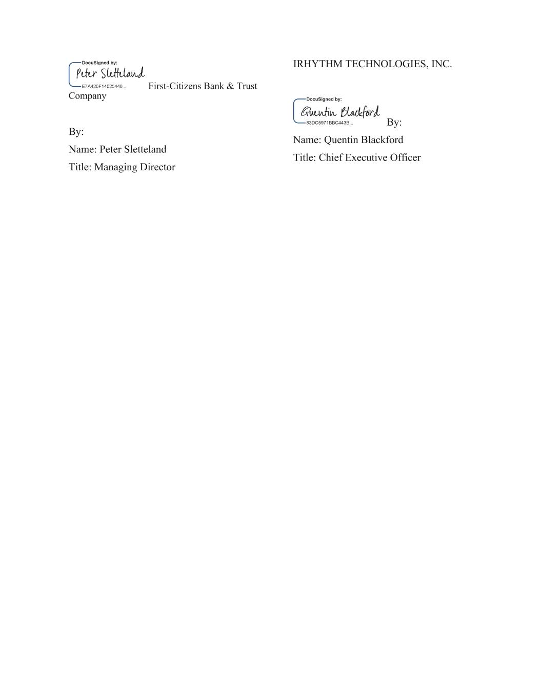 First-Citizens Bank & Trust Company By: Name: Peter Sletteland Title: Managing Director IRHYTHM TECHNOLOGIES, INC. By: Name: Quentin Blackford Title: Chief Executive Officer