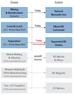 We are also looking to expand our Phase 1 REE separation capability in 2027/28 through the addition of a larger stand-alone separation facility at the Mill (referred to as “Phase 2”), which would also allow us to produce separated dysprosium (“Dy”), Terbium (“Tb”) and potentially other REE materials at the Mill (referred to as “Phase 3”) from monazite and other REE process streams. NdPr, Dy and Tb are the main magnetic REE oxides used in the powerful neodymium-iron-boron magnets that power the most efficient EVs, along with uses in wind turbines and other clean energy and defense technologies.