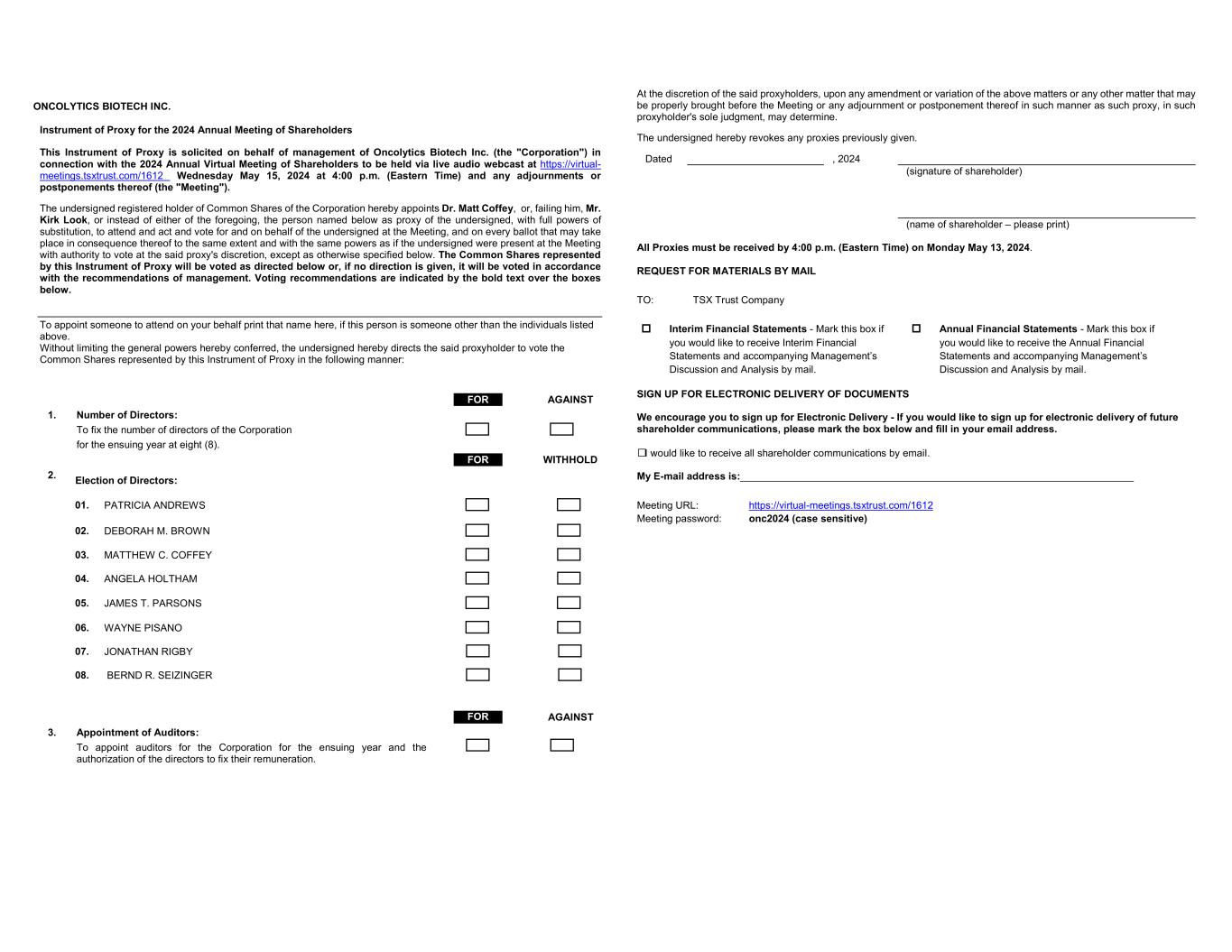 | | | Oncolytics Biotech Inc. (Registrant) |