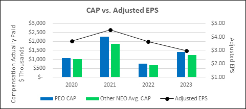 | Fiscal Year | Summary Compensation Table Total for PEO(1) | Compensation Actually Paid to PEO(1) | Average Summary Compensation Table Total for Non-PEO Named Executive Officers(2) | Average Compensation Actually Paid to Non-PEO Named Executive Officers(2) | Value of Initial Fixed $100 Investment Based On | Net Income (Dollars in thousands) | Adjusted EPS | |
