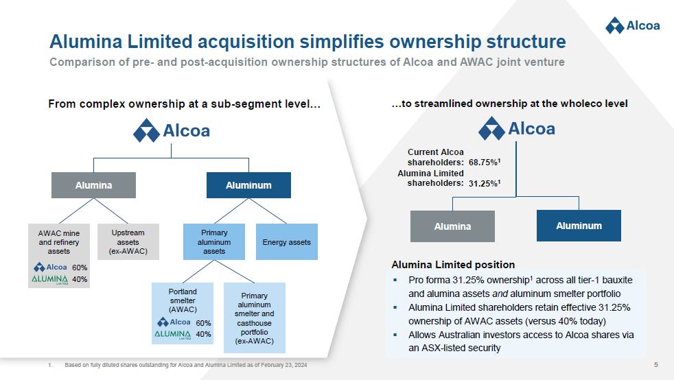 Alcoa, its directors, executive officers and other persons related to Alcoa may be deemed to be participants in the solicitation of proxies from Alcoa’s stockholders in connection with the proposed transaction. Information about the directors and executive officers of Alcoa and their ownership of common stock of Alcoa is set forth in the section entitled “Information about our Executive Officers” included in Alcoa’s annual report on Form 10-K for the fiscal year ended December 31, 2023, which was filed with the SEC on February 21, 2024 (and which is available at https://www.sec.gov/ixviewer/ix.html?doc=/Archives/edgar/data/1675149/000095017024018069/aa-20231231.htm), and in the sections entitled “Director Nominees” and “Stock Ownership of Directors and Executive Officers” included in its proxy statement for its 2024 annual meeting of stockholders, which was filed with the SEC on March 19, 2024 (and which is available at https://www.sec.gov/ix?doc=/Archives/edgar/data/1675149/000119312524071354/d207257ddef14a.htm).