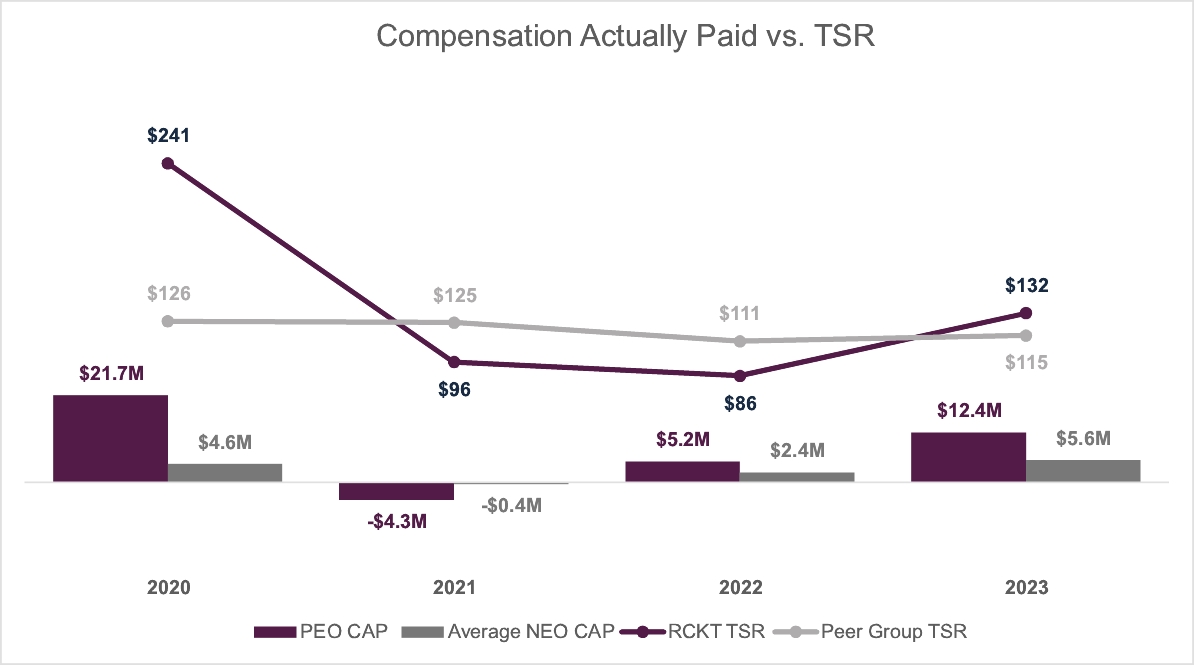 (1) | Amounts represent the aggregate grant-date fair value of option awards granted to our directors in 2023, computed in accordance with FASB ASC Topic 718 excluding any estimates of forfeitures related to service-based vesting conditions. For information regarding assumptions underlying the valuation of equity awards, see Note 9 to our consolidated financial statements for the year ended December 31, 2023. These amounts do not correspond to the actual value that may be recognized by the directors upon vesting of the applicable awards. As of December 31, 2023, Rocket Board members held unexercised options to purchase the following number of shares: 212,856 shares for Mr. Wong, 227,044 shares for Mr. Makker, 193,519 shares for Mr. Granadillo, 196,081 shares for Mr. Boess, 175,831 shares for Mr. Yalamanchi, 366,705 shares for Mr. Southwell, 158,465 shares for Dr. Björk and 32,482 for Mr. Woods. |