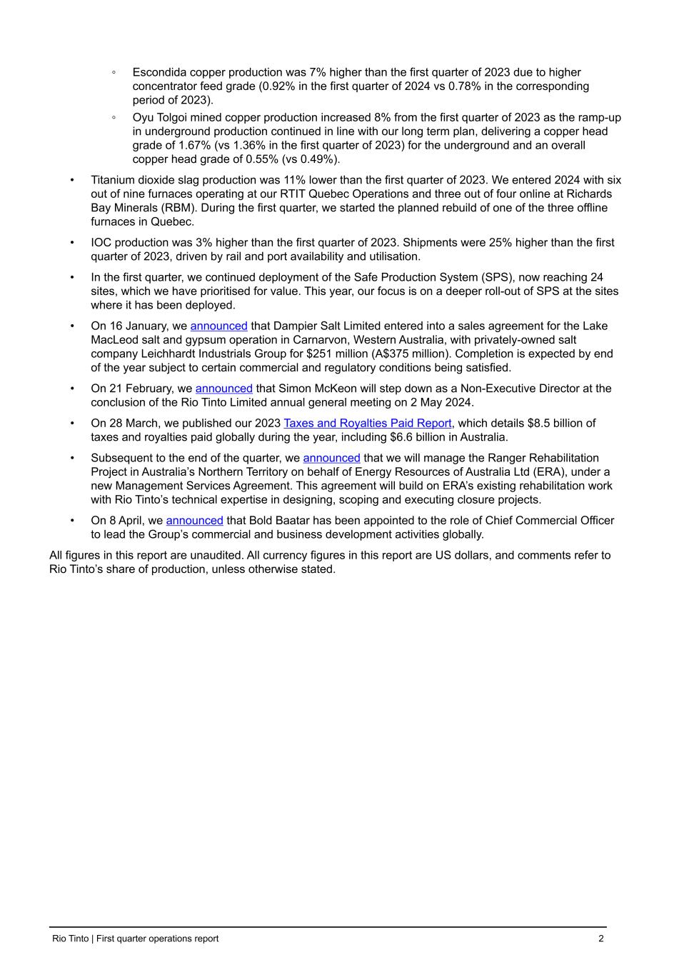 | Rio Tinto plc | Rio Tinto Limited |
