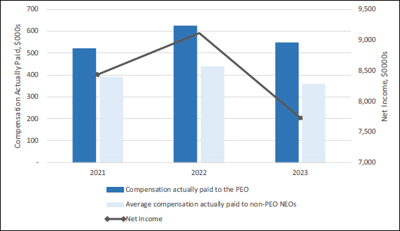 The relationship between (1) compensation actually paid to the PEO and the average of compensation actually paid to the non-PEO NEOs and the (2) net income of the Company for the last three fiscal years is shown in Figure 2.