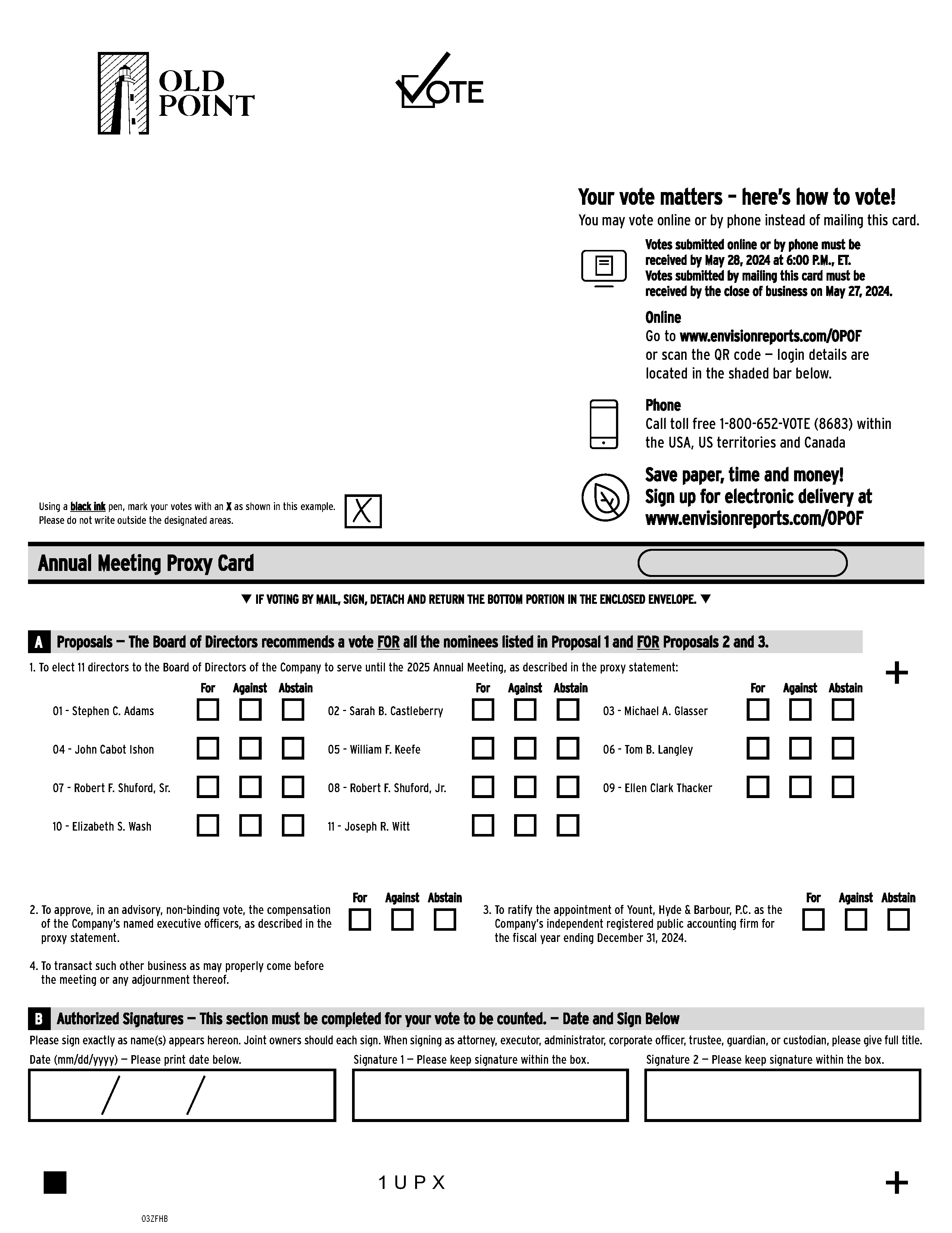 We appreciate your continuing loyalty and support of Old Point Financial Corporation.