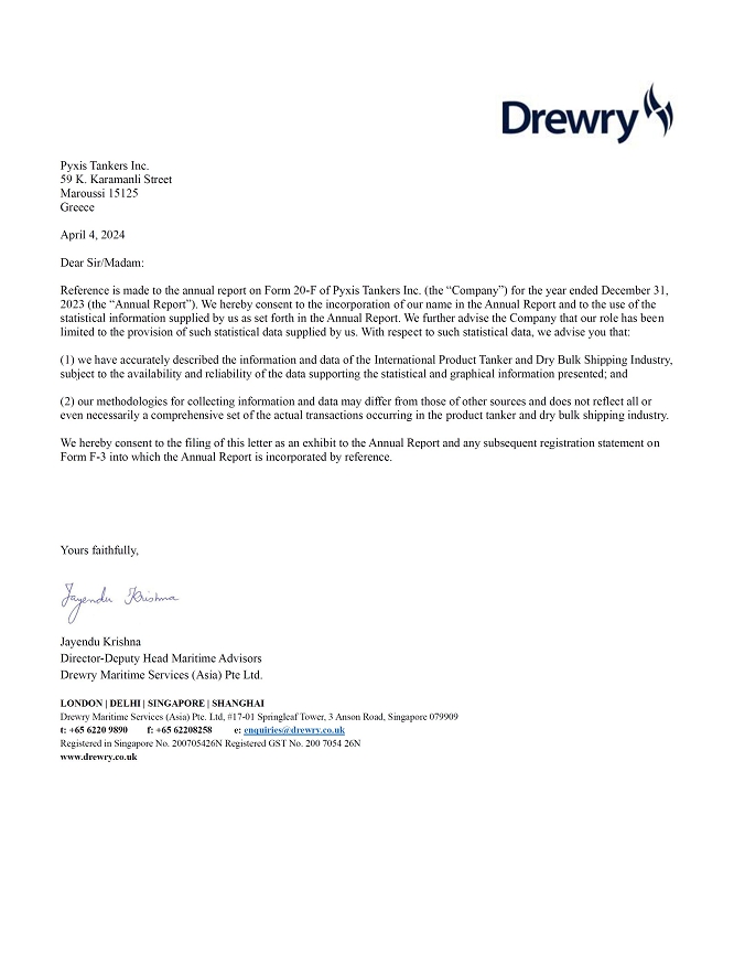 Pursuant to the Securities Act of 1933, as amended, the undersigned, a duly authorized representative of Pyxis Tankers Inc. in the United States, has signed this Registration Statement on Form F-3 in the City of Vero Beach, State of Florida, on the 22nd day of April, 2024.
