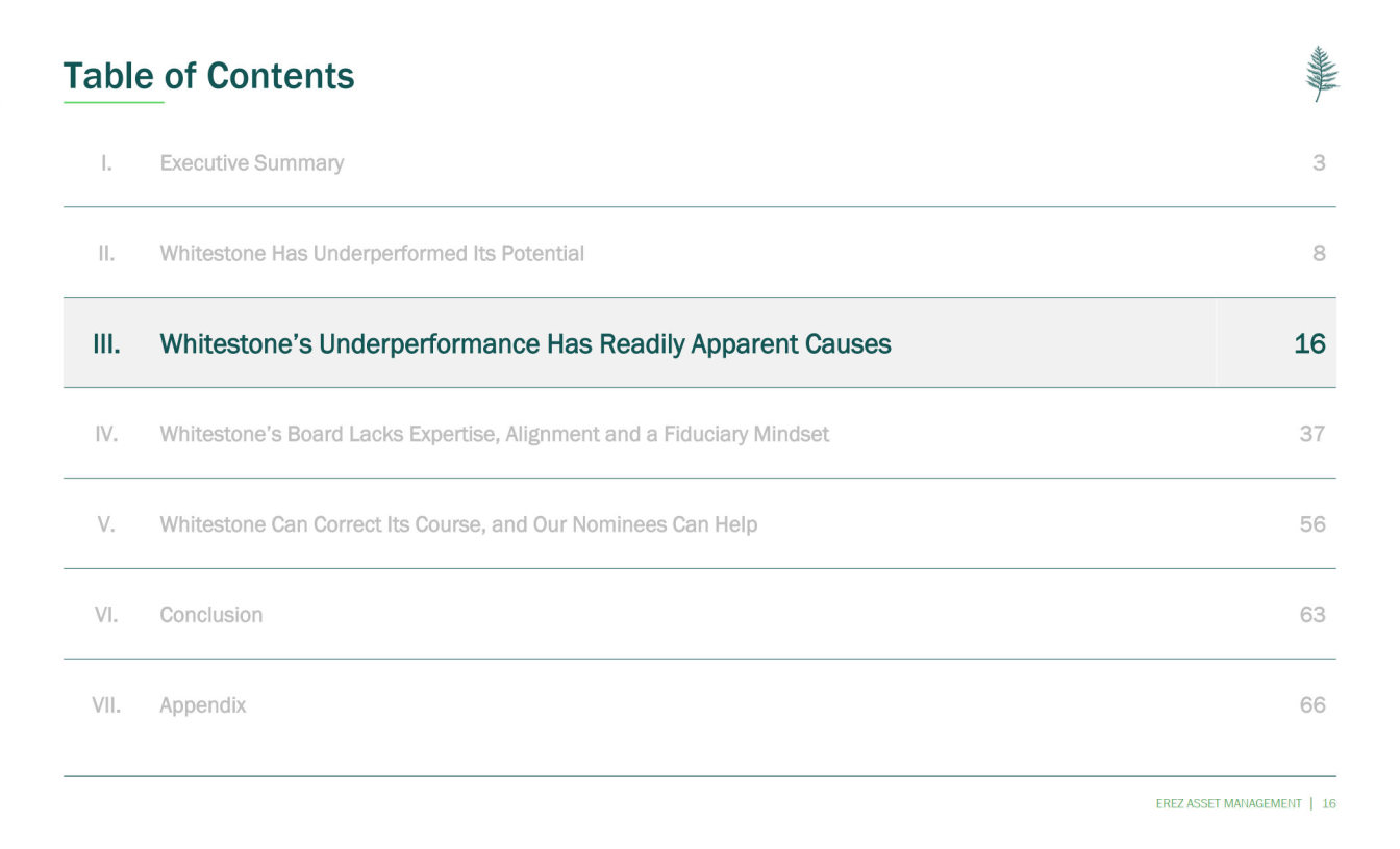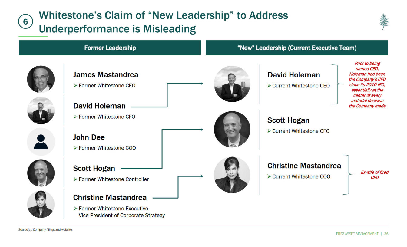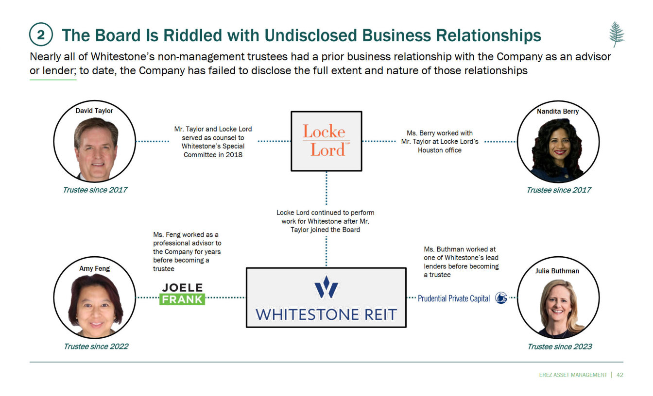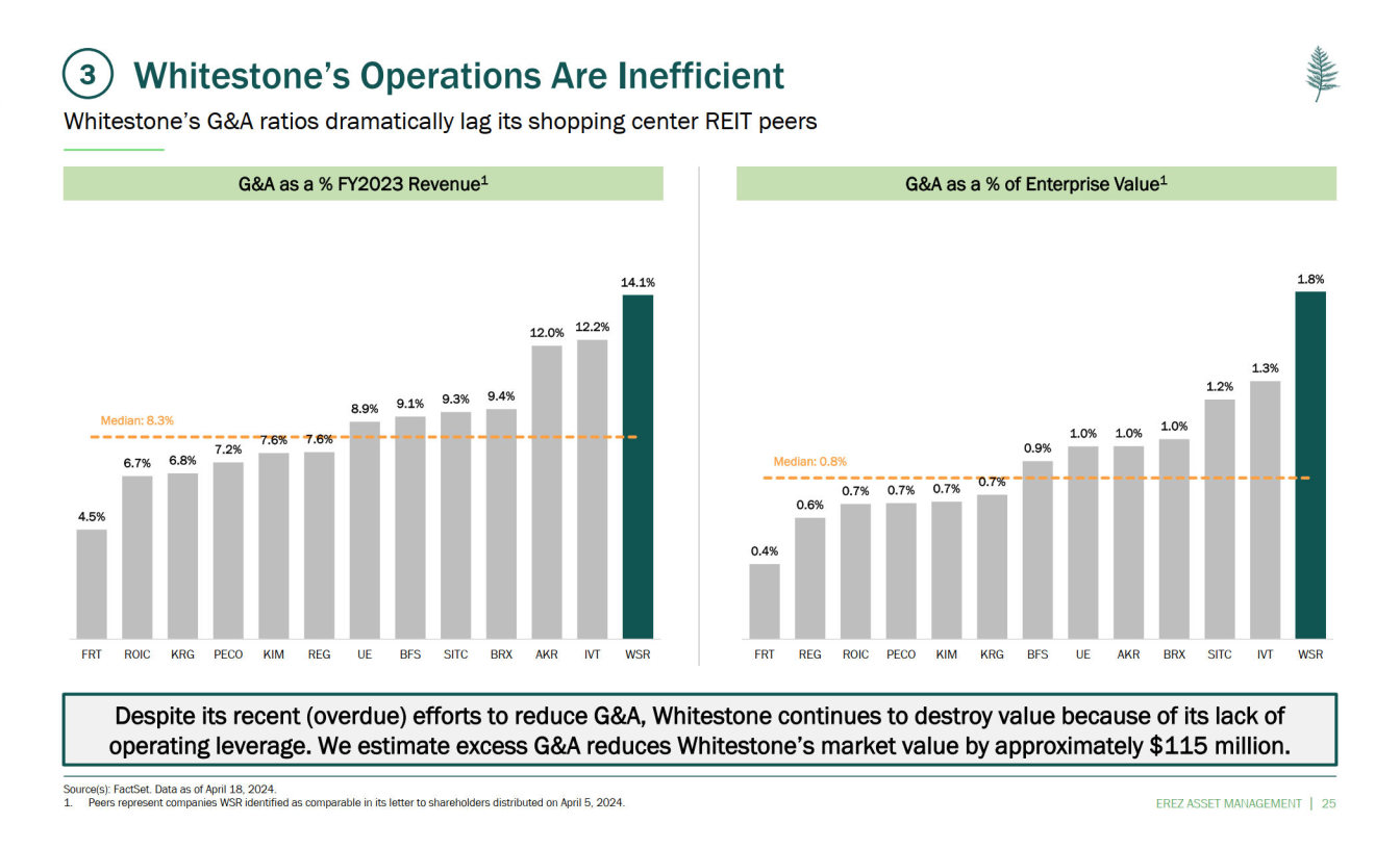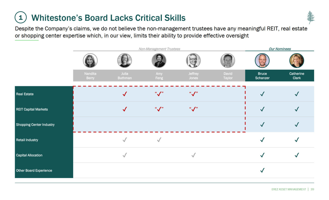 On April 22, 2024, Erez and its affiliates issued the following Investor Presentation titled “Change is Needed at Whitestone: Erez Offers a Path to Restoring
