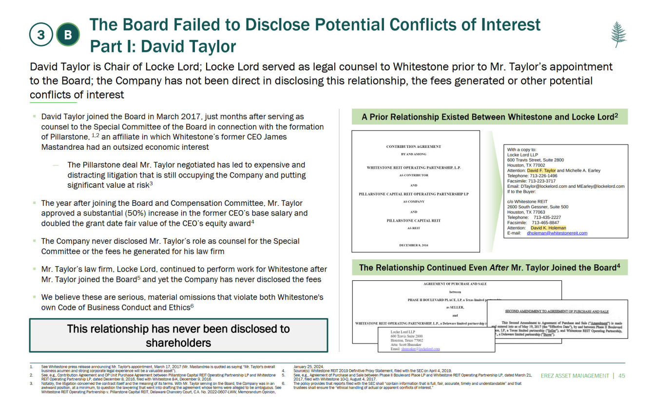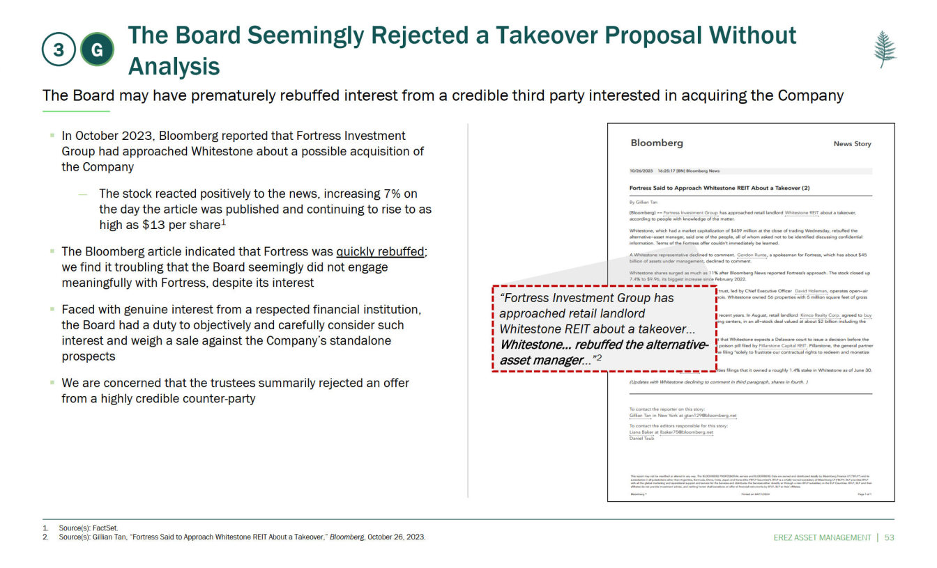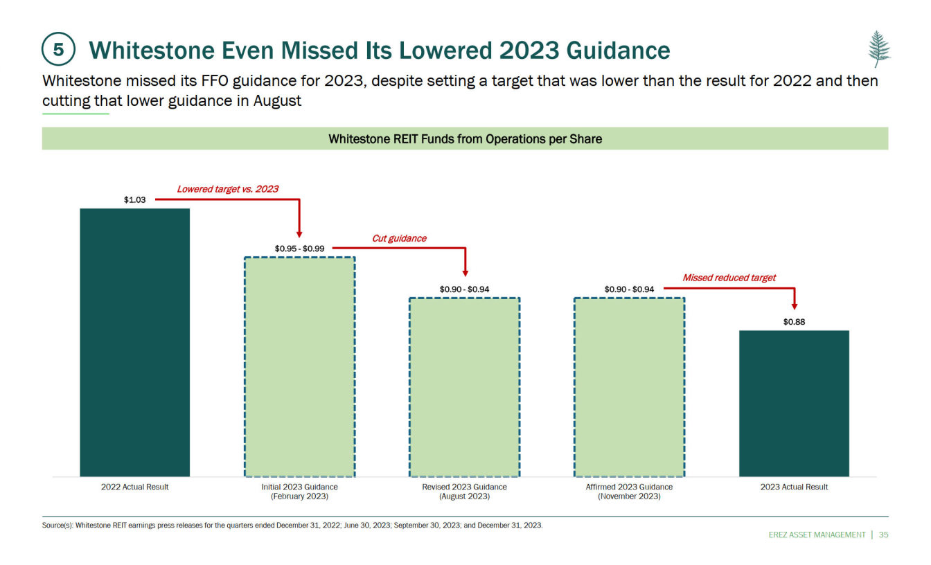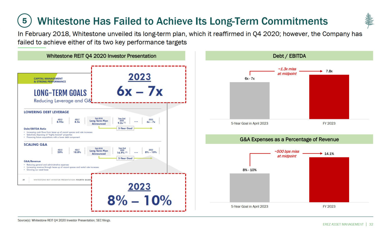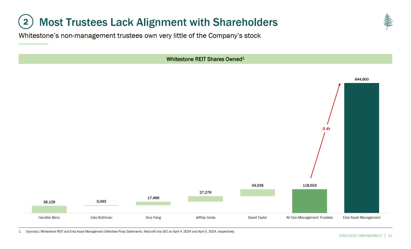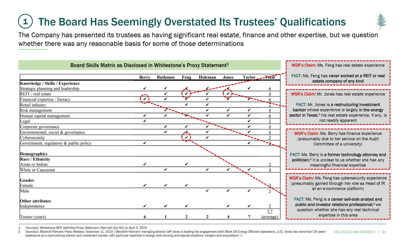 On April 22, 2024, Erez and its affiliates issued the following Investor Presentation titled “Change is Needed at Whitestone: Erez Offers a Path to Restoring