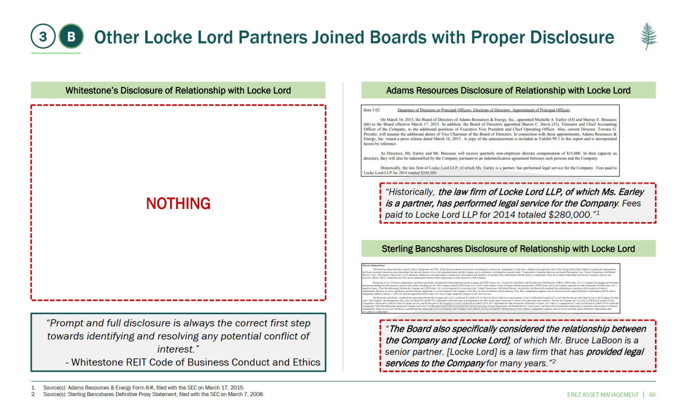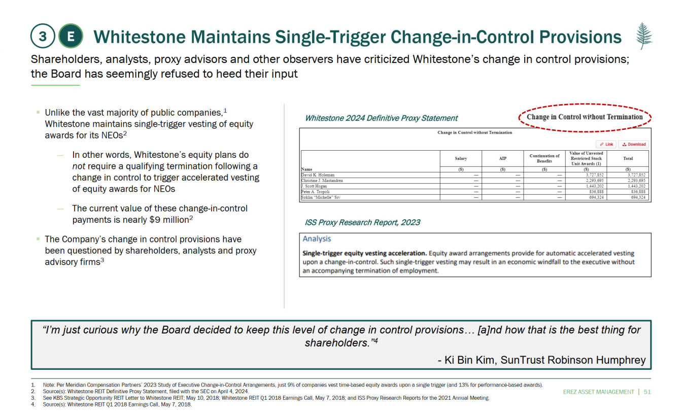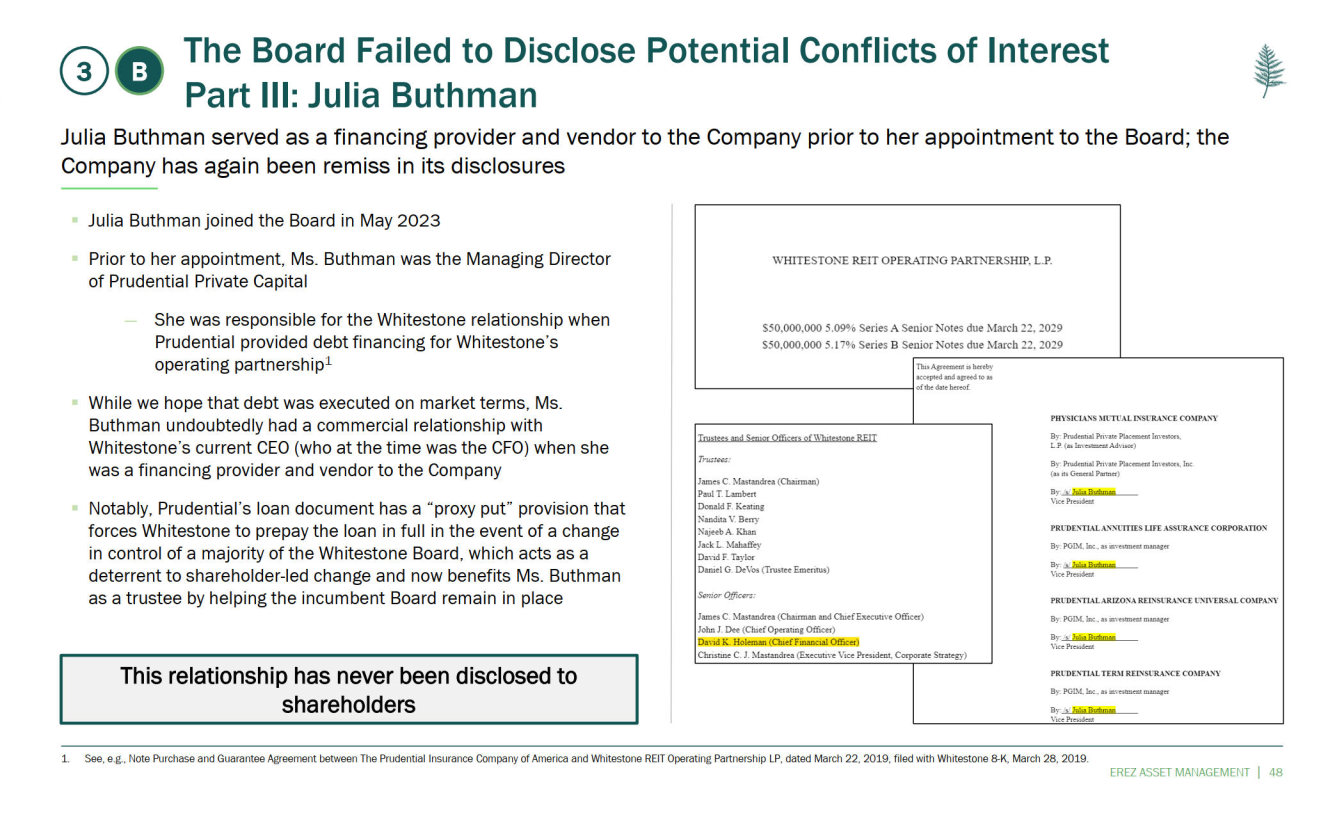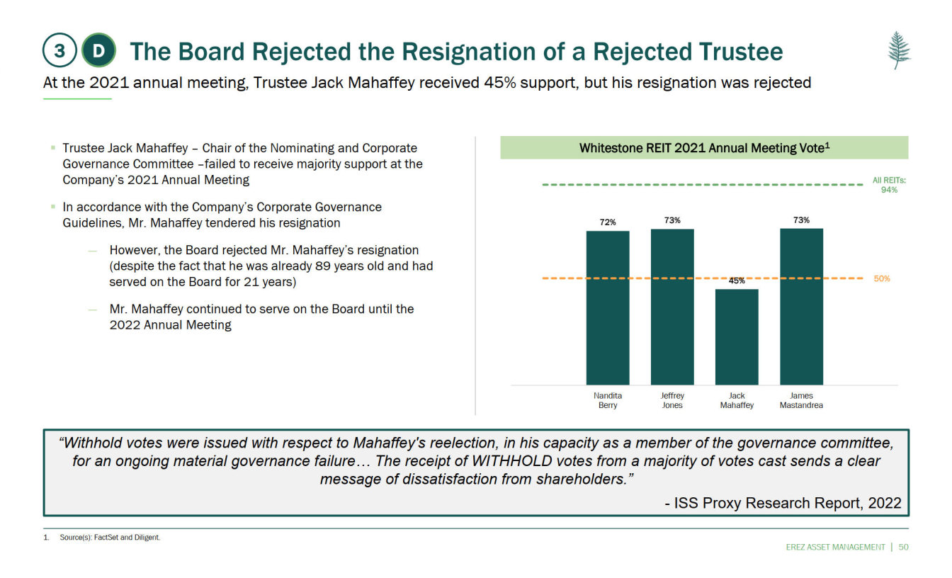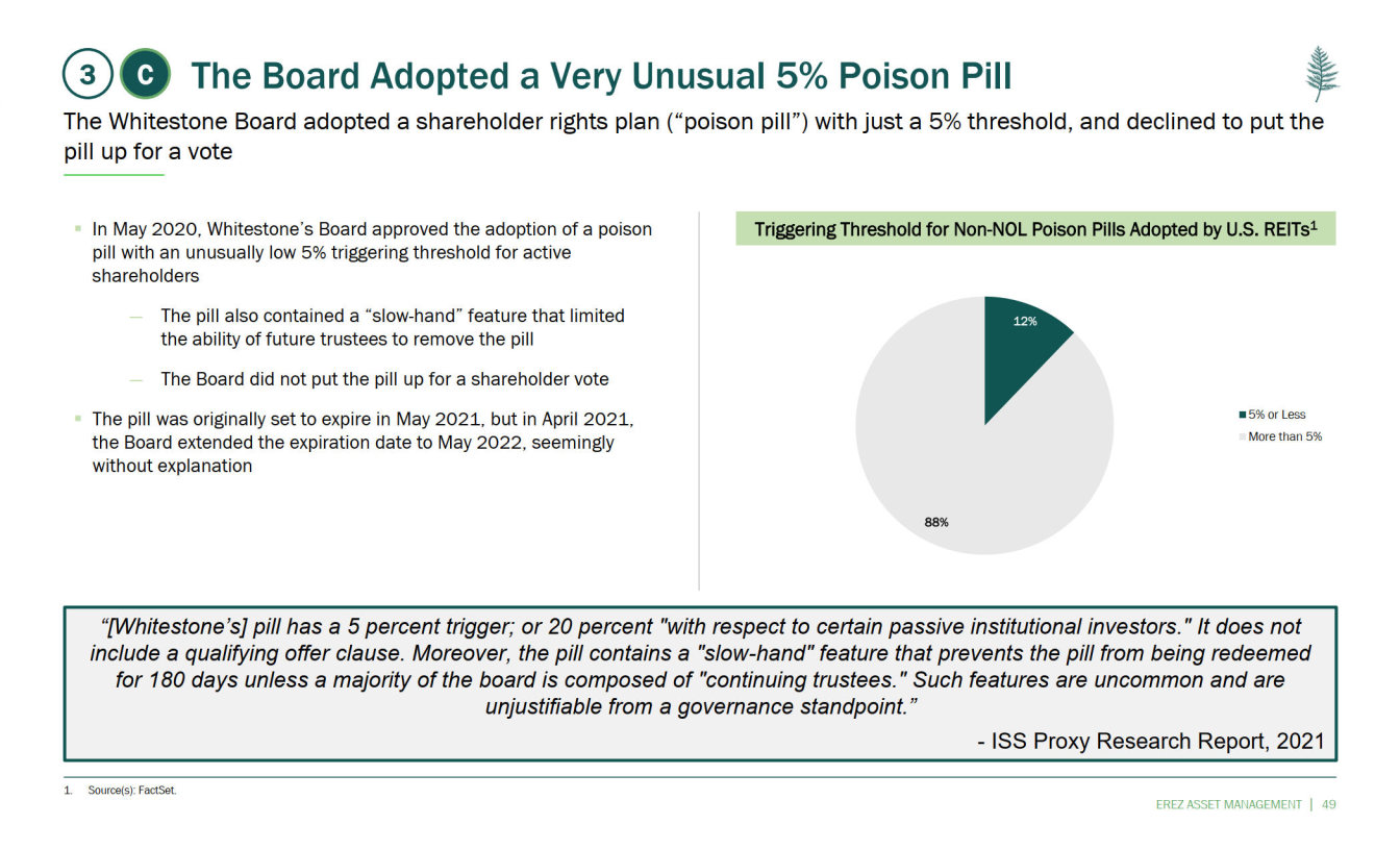 On April 22, 2024, Erez and its affiliates issued the following Investor Presentation titled “Change is Needed at Whitestone: Erez Offers a Path to Restoring
