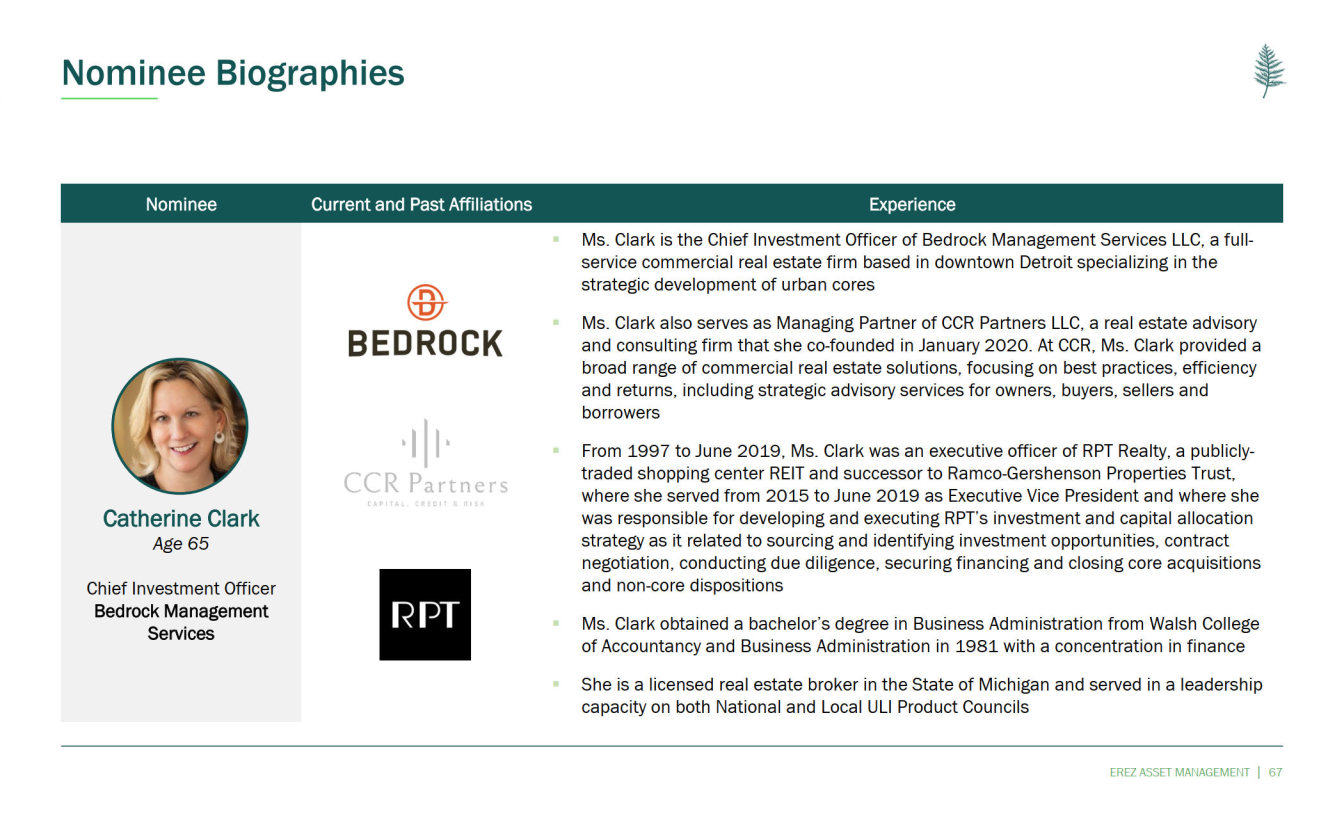 Erez REIT Opportunities LP, Erez Asset Management LLC, Bruce Schanzer and Catherine Clark (collectively, the “Participants”) are participants in the solicitation of proxies