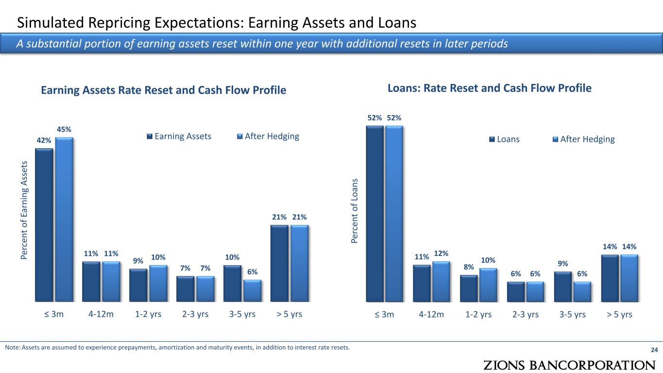 Simulated Repricing Expectations: Earning Assets and Loans 24 A substantial portion of earning assets reset within one year with additional resets in later periods Note: Assets are assumed to experience prepayments, amortization and maturity events, in addition to interest rate resets. 52% 11% 8% 6% 9% 14% 52% 12% 10% 6% 6% 14% ≤ 3m 4-12m 1-2 yrs 2-3 yrs 3-5 yrs > 5 yrs Pe rc en t o f L oa ns Loans: Rate Reset and Cash Flow Profile Loans After Hedging42% 11% 9% 7% 10% 21% 45% 11% 10% 7% 6% 21% ≤ 3m 4-12m 1-2 yrs 2-3 yrs 3-5 yrs > 5 yrs Pe rc en t o f E ar ni ng A ss et s Earning Assets Rate Reset and Cash Flow Profile Earning Assets After Hedging