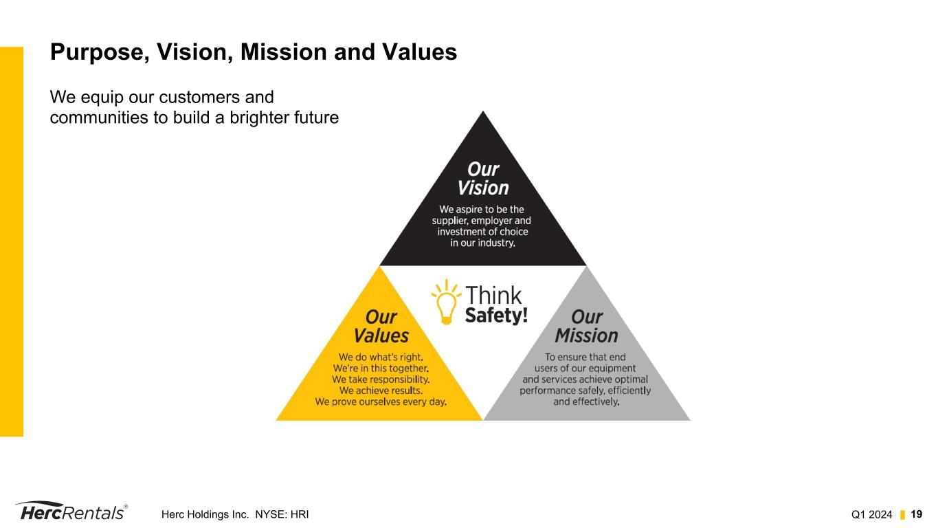 Q1 2024Herc Holdings Inc. NYSE: HRI 19 Purpose, Vision, Mission and Values We equip our customers and communities to build a brighter future