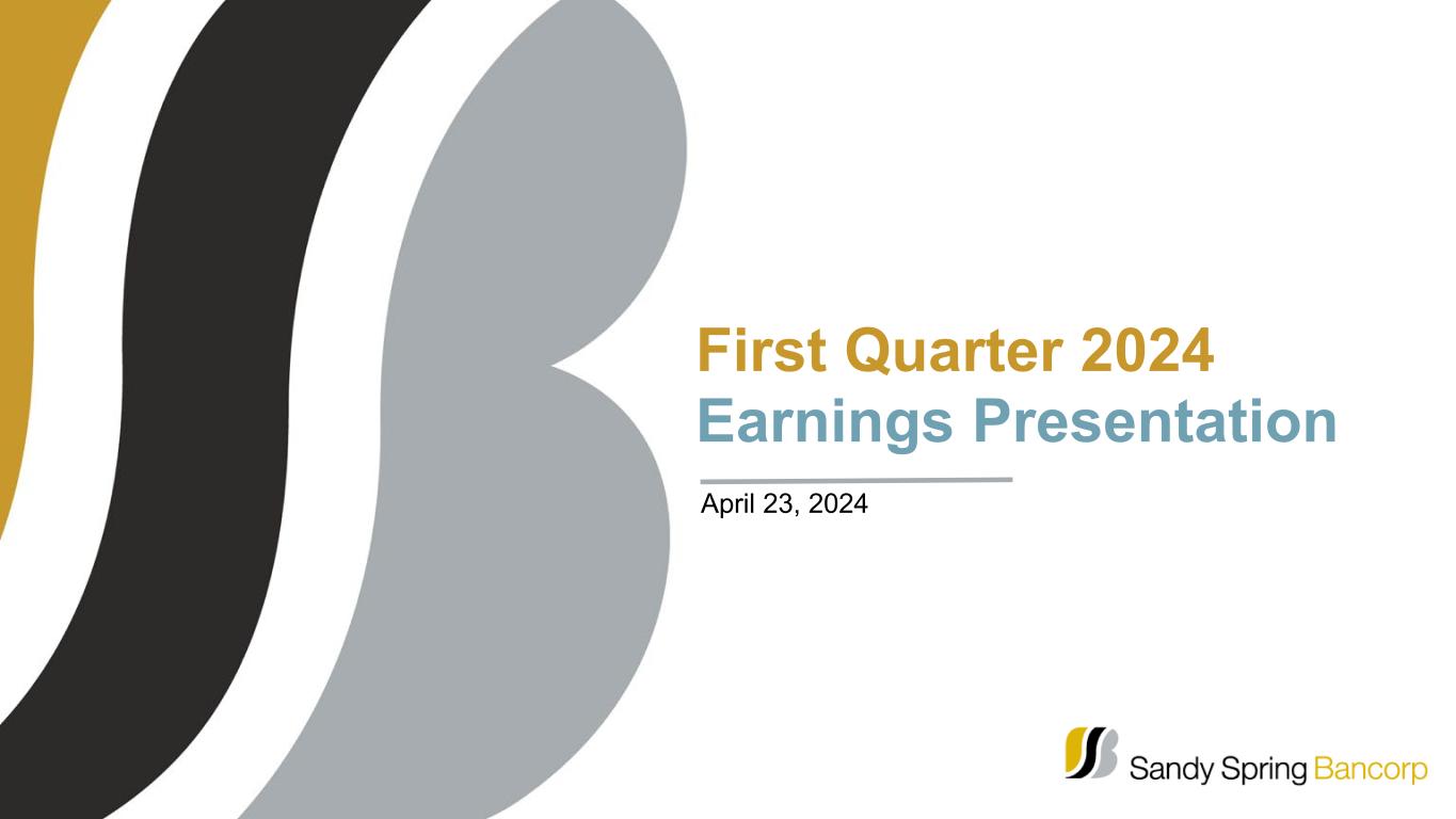 OLNEY, MARYLAND, April 23, 2024 — Sandy Spring Bancorp, Inc. (Nasdaq-SASR), the parent company of Sandy Spring Bank, reported net income of $20.4 million ($0.45 per diluted common share) for the quarter ended March 31, 2024, compared to net income of $26.1 million ($0.58 per diluted common share) for the fourth quarter of 2023 and $51.3 million ($1.14 per diluted common share) for the first quarter of 2023.