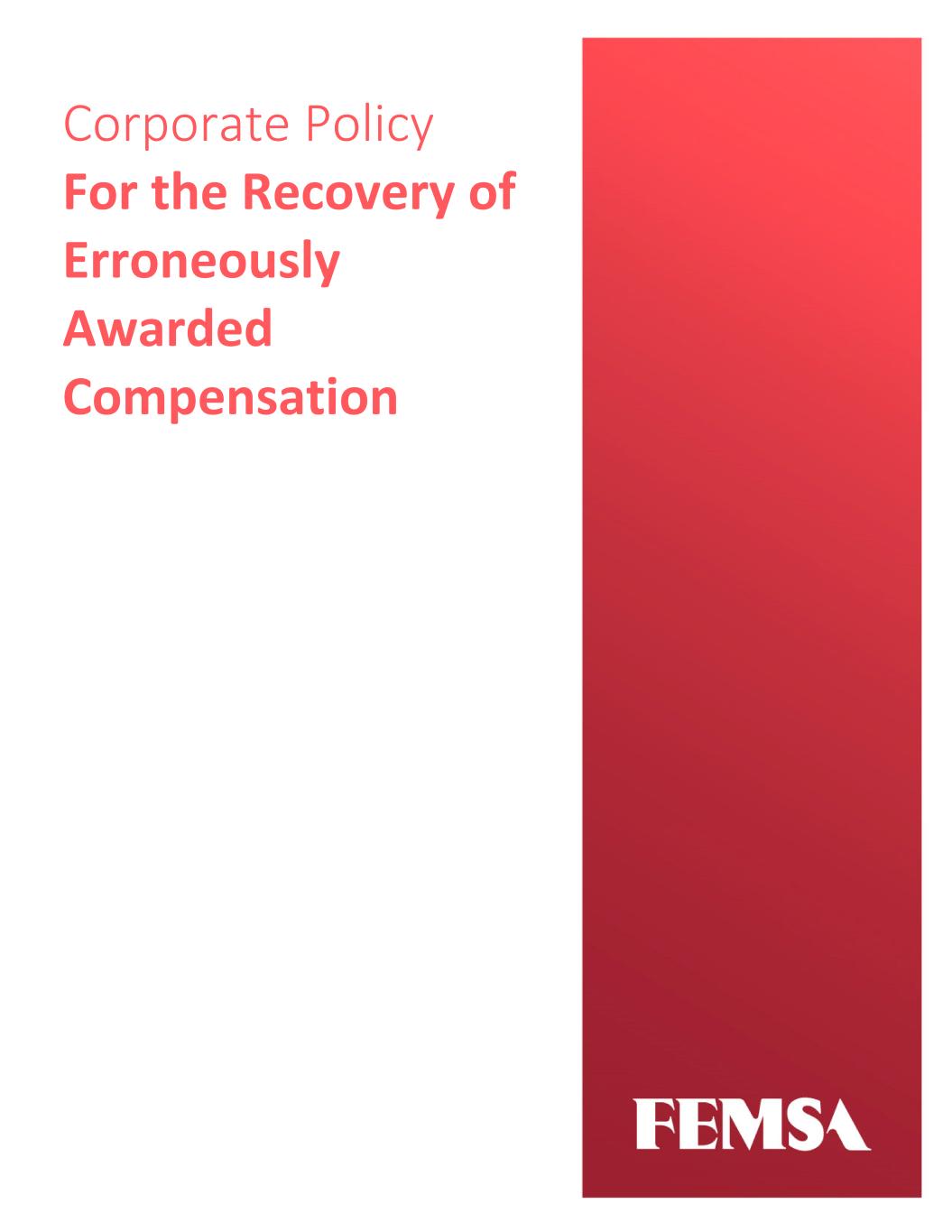 POLICY FOR THE RECOVERY OF ERRONEOUSLY AWARDED COMPENSATION OUR PEOPLE | CORPORATE POLICY RESTRICTED DOCUMENT 1 Corporate Policy For the Recovery of Erroneously Awarded Compensation