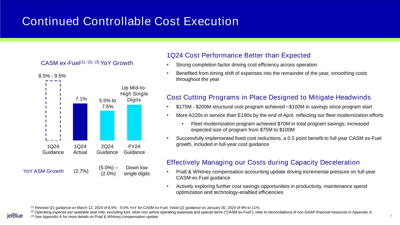 •Operating expense per available seat mile, excluding fuel, other non-airline operating expenses, and special items ("CASM ex-Fuel")(1) for the first quarter of 2024 increased 7.1%(1) year-over-year.