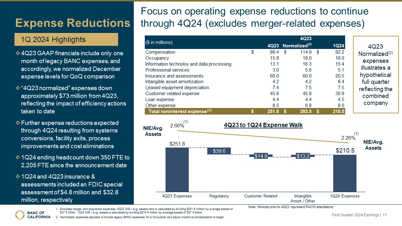 Noninterest expenses declined by over $41 million to $210.5 million (excluding merger costs).