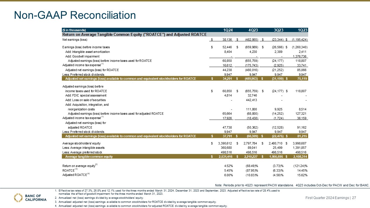 Banc of California, Inc. Earnings Conference Call Presentation Materials.