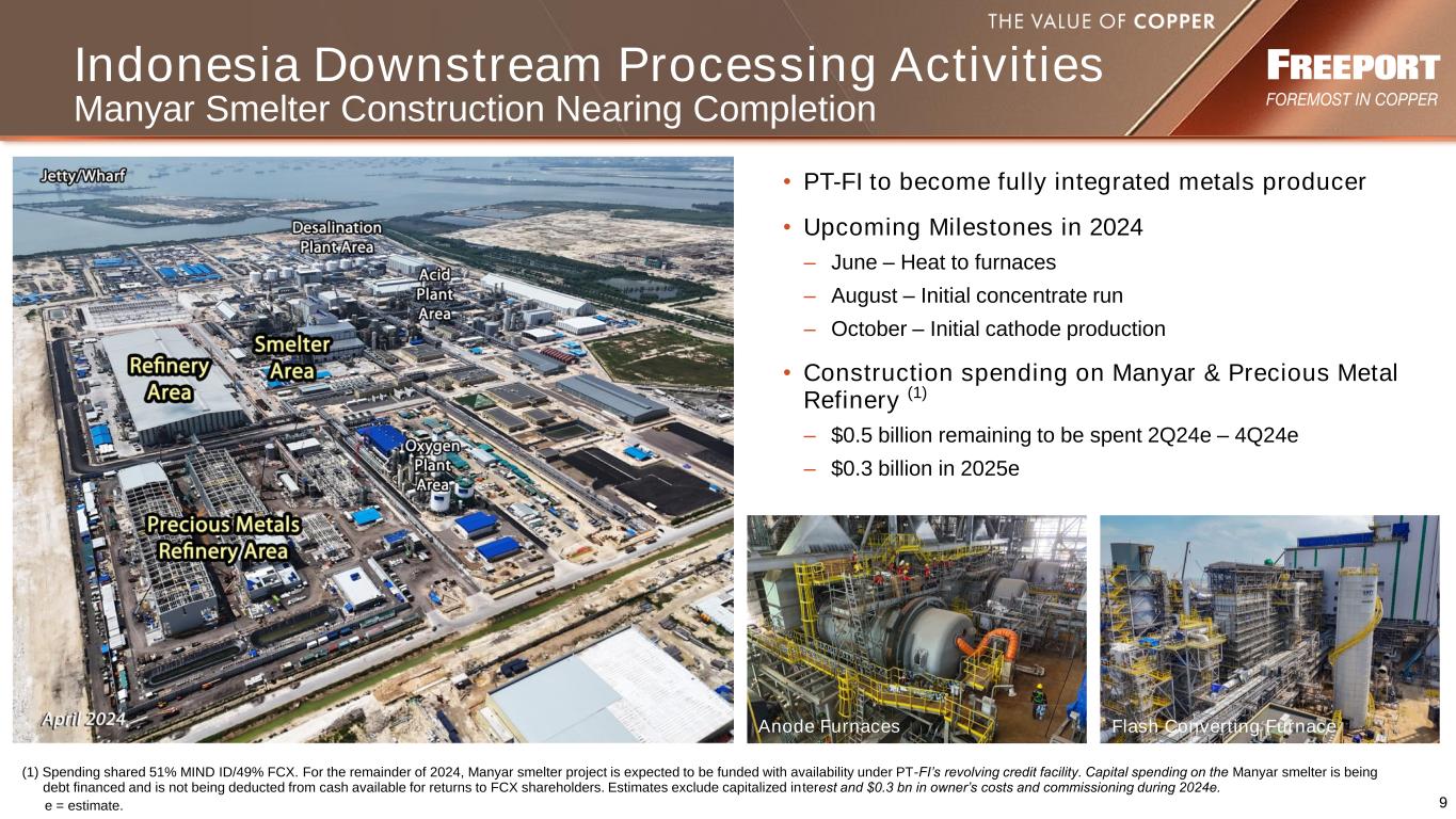 •Indonesia smelter projects nearing completion with start-up activities expected in second-quarter 2024