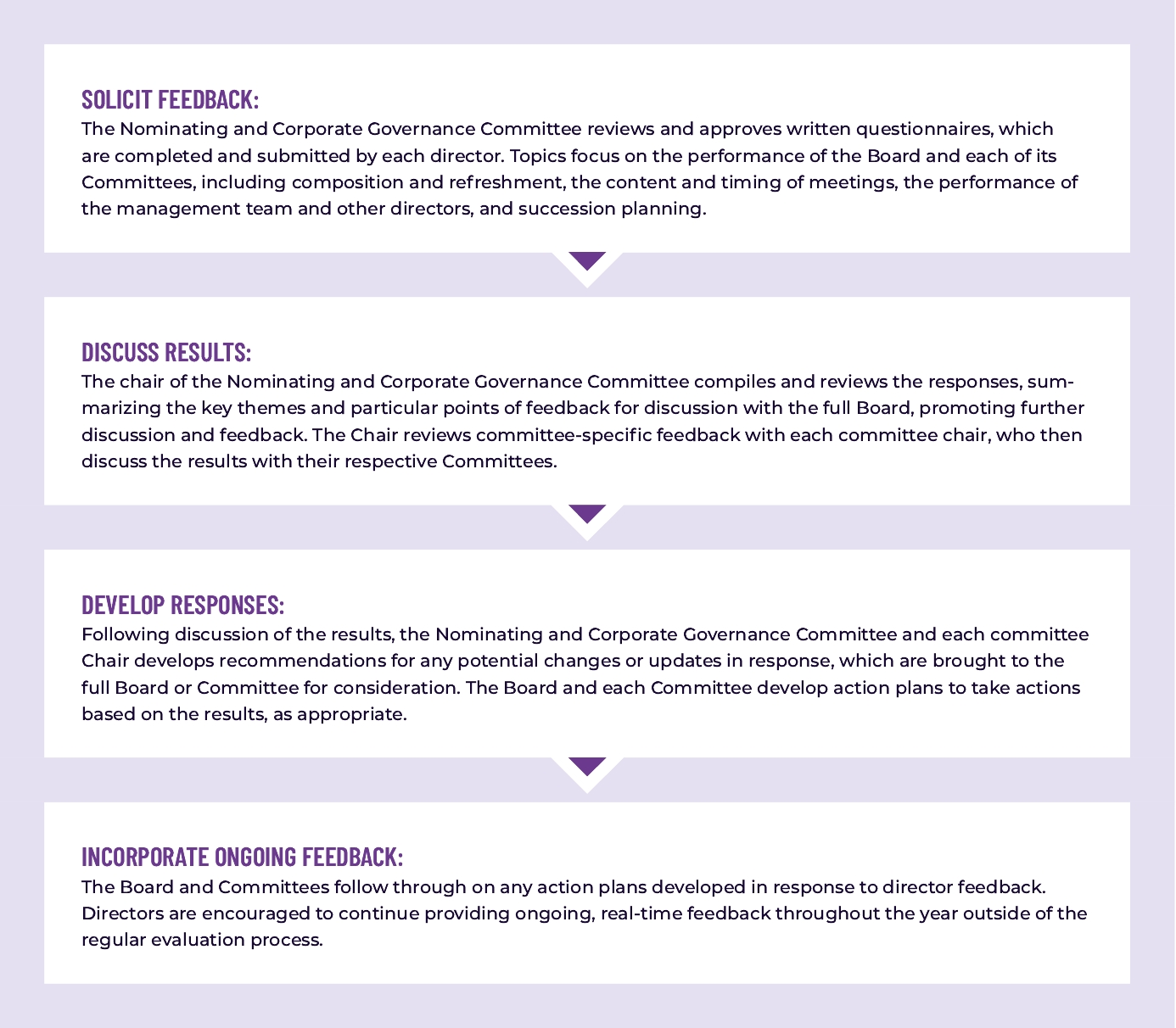 SUCCESSION PLANNING | | | • Extensive CEO and executive leadership succession planning • Robust director succession planning with focus on Board candidates with diverse experience, skills, background, race/ethnicity and gender • Annual Board and Committee self-evaluations |