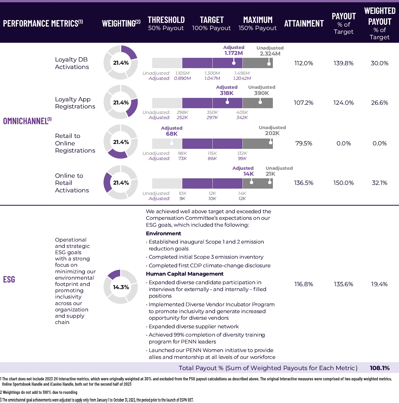 (3) | Adjustments to the target and achieved performance results for the 2023 STIP calculation of Adjusted EBITDAR only include Interactive segment results for January 1 to June 30, 2023, the period prior to the Company’s decision to enter into a strategic alliance with ESPN, and to exclude Interactive segment results for the period following the Company’s decision to launch ESPN BET. |