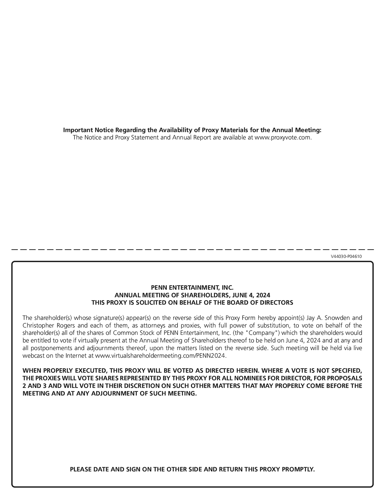 | | | DATE AND TIME Tuesday, June 4, 2024 10 a.m. Eastern Time | | | | | | LOCATION Live webcast accessible at: www.virtualshareholdermeeting .com/PENN2024 | | | | | | RECORD DATE April 5, 2024 |