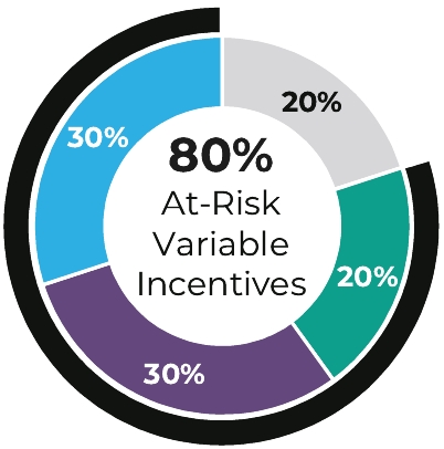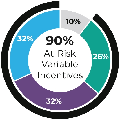 * | The above pie charts reflect the target percent values of new incentives awarded in 2023. These percent values vary somewhat from the grant values reflected in the Summary Compensation Table and the Grants of Plan-Based Awards Table in the CD&A section below, because the values in those tables include portions of performance-based equity awards that reflect awards originally made in 2021, 2022, and 2023 (consistent with SEC disclosure rules). |