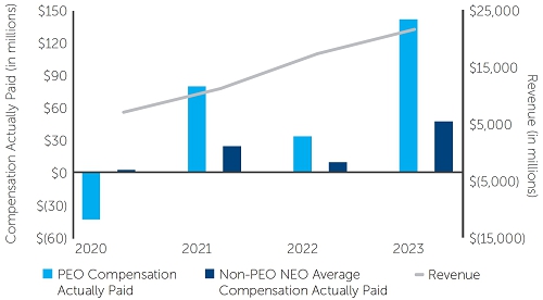 In 2023, we achieved record-setting financial results, with more than $21 billion in revenue, which was up 25% compared to the year prior, more than $4 billion in net income, which was up 40% from the prior year, more than $7 billion in adjusted EBITDA, which was up 34% compared to the prior year, and generated $7 billion in net cash provided by operating activities and free cash flow. With this solid financial performance and our strong balance sheet, we were able to return over $10 billion to shareholders over the course of the year through stock repurchases, and we recently paid our first cash dividend. (See Appendix A for a reconciliation of non-GAAP financial measures to GAAP financial measures.)