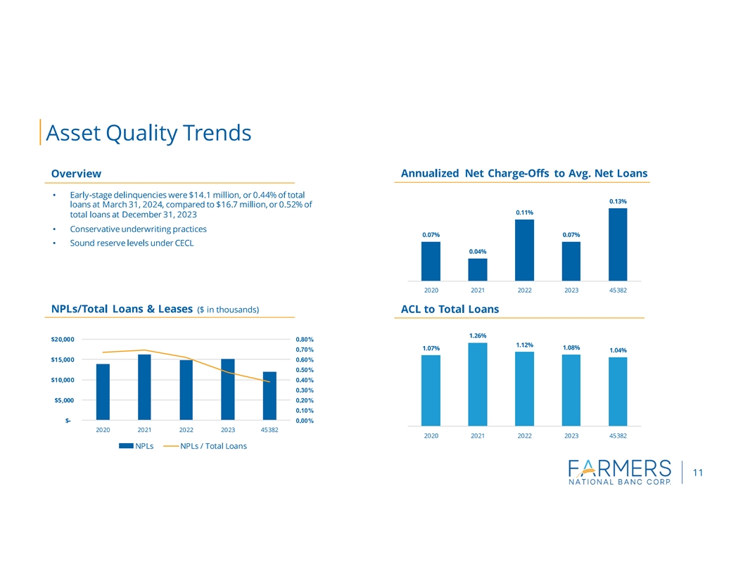 | | Excellent asset quality as non-performing loans to total loans improved to 0.38% at March 31, 2024 from 0.47% at December 31, 2023 |