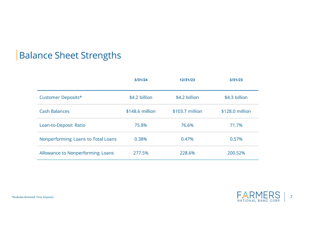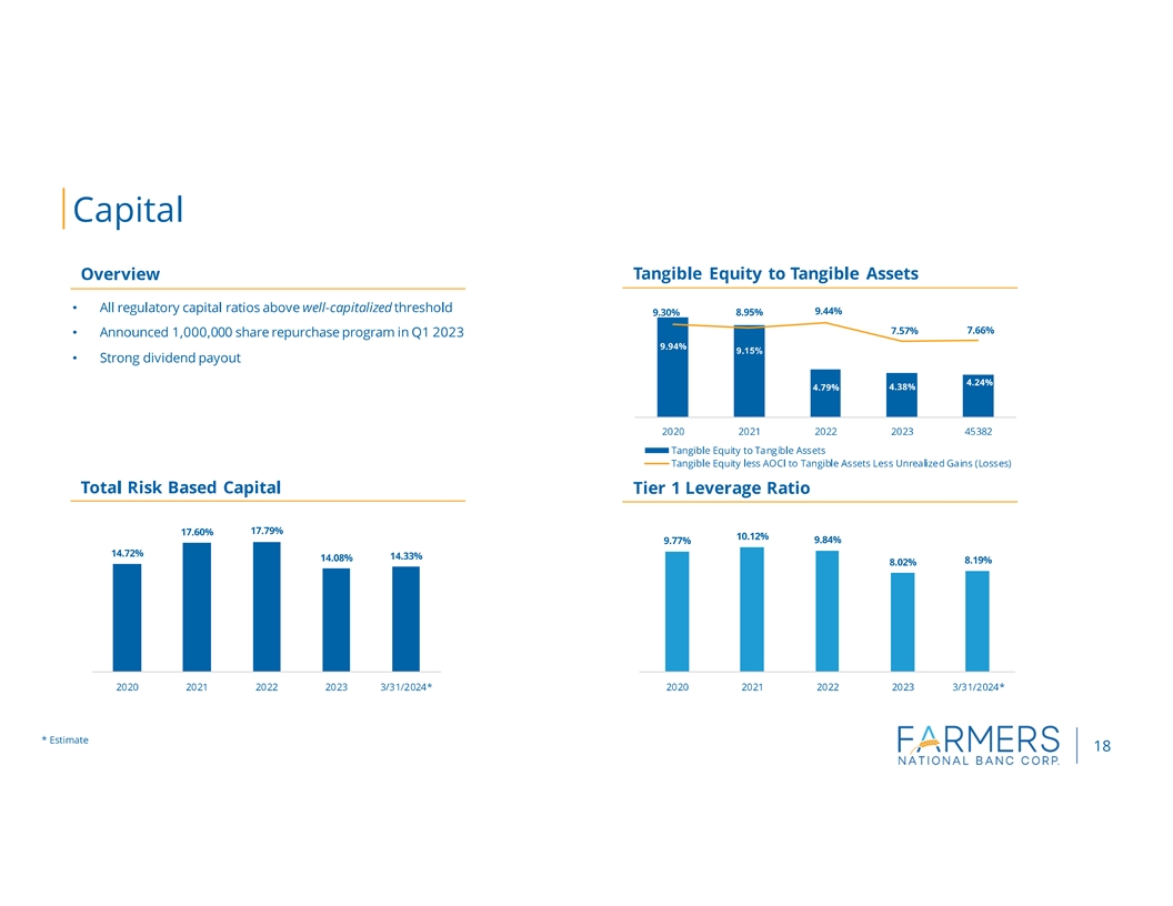 | | Deposit growth of $20.7 million, or 2.0% annualized, for the first quarter of 2024 |