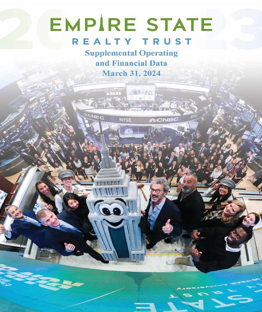 New York, New York, April 24, 2024 – Empire State Realty Trust, Inc. (NYSE: ESRT) is a NYC-focused REIT that owns and operates a portfolio of modernized, amenitized, and well-located office, retail, and multifamily assets, and the Observatory deck attraction in ESRT’s flagship Empire State Building – the “World’s Most Famous Building”. The Company is a recognized leader in energy efficiency and indoor environmental quality. Today the Company reported its operational and financial results for the first quarter 2024. All per share amounts are on a fully diluted basis, where applicable.
