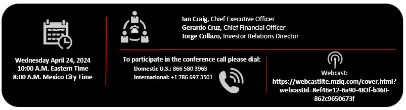 "As we reflect on a positive first quarter, I am encouraged by the progress we are making across our strategic priorities. We continue implementing a sustainable growth model, building on the positive momentum of our core business. To this end, we posted solid volumes in key markets such as Mexico, Brazil, Colombia, Guatemala, and our Central America South territories, supporting our top-line and operating income to achieve double-digit growth.