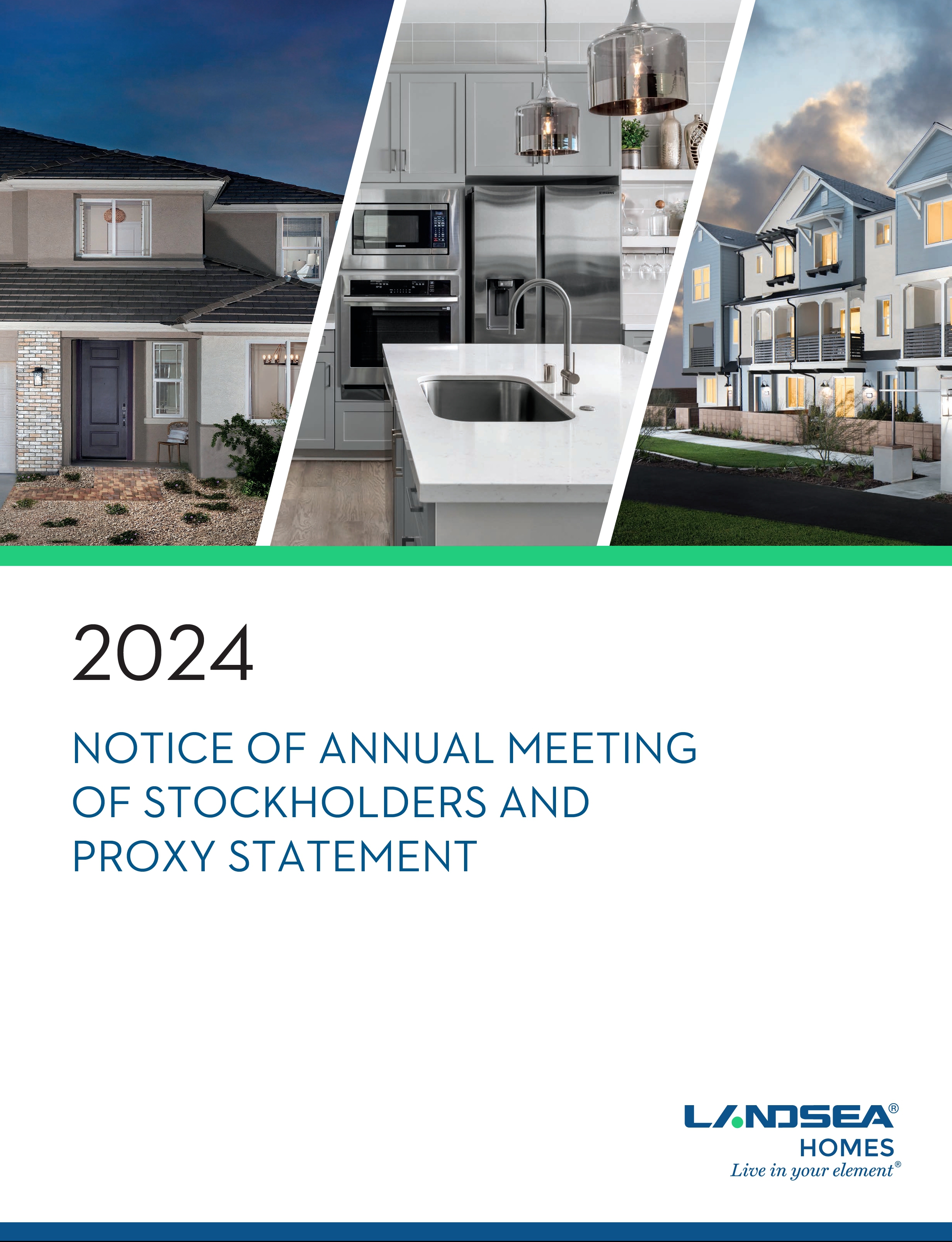 We refer to Landsea Homes Corporation as the “Company,” “us,” “we,” or “our” in this Proxy Statement. We are a rapidly growing homebuilder focused on High Performance Homes that deliver energy efficient living in attractive geographies. Headquartered in Dallas, Texas, we primarily engage in the design, construction, marketing, and sale of suburban and urban single-family detached and attached homes in Arizona, California, Colorado, Florida, Texas, and Metro New York. While we offer a wide range of housing options, we primarily focus on entry-level and first-time move-up homes and believe our markets are characterized by attractive long-term housing fundamentals. Landsea Green Management Ltd (“Landsea Green”) indirectly owns 100% of our largest stockholder, Landsea Holdings Corporation, a Delaware corporation (“Landsea Holdings”).