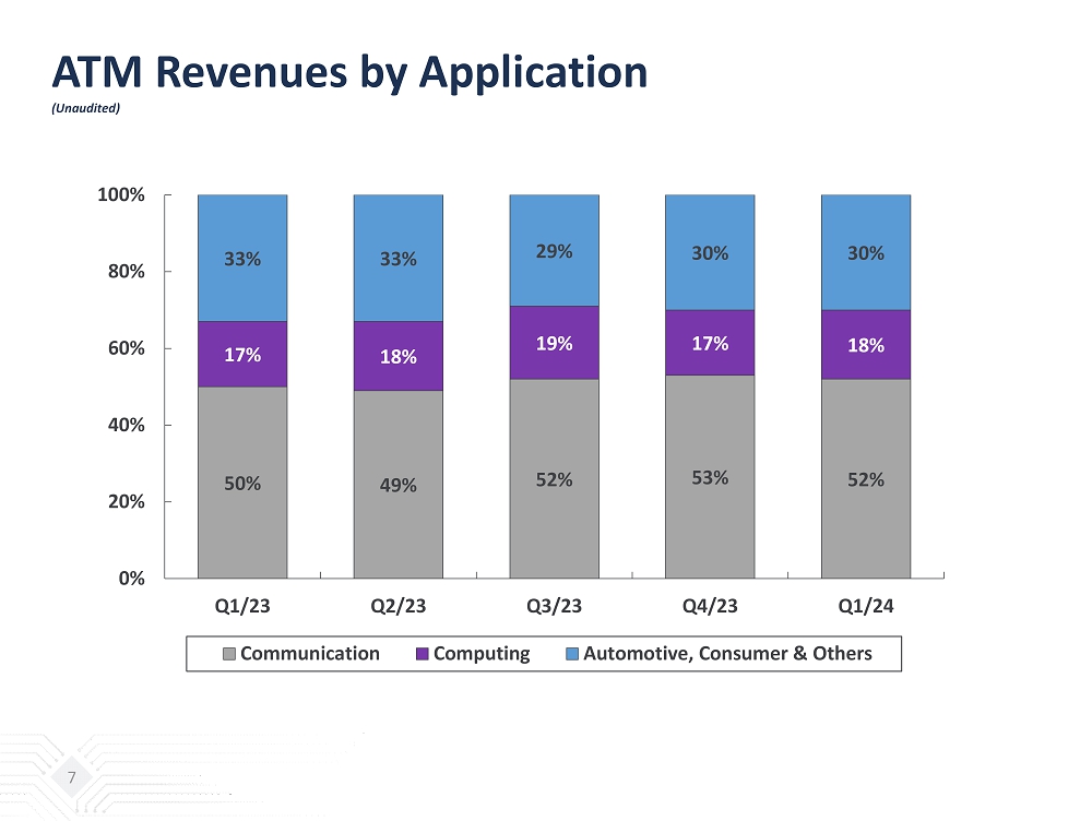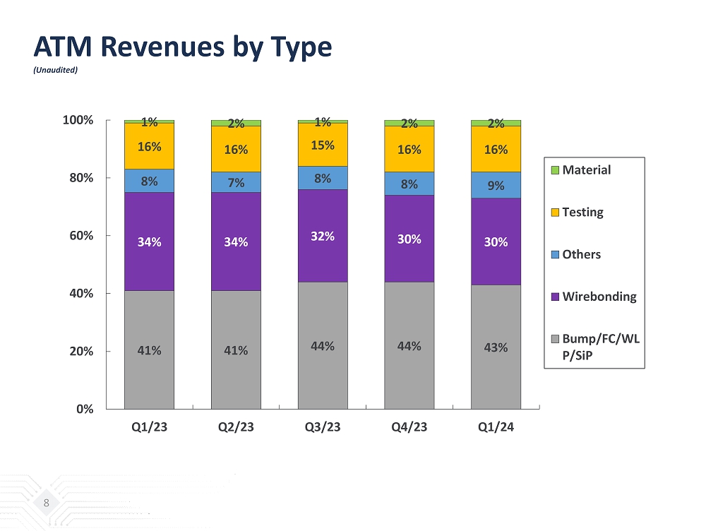 ATM Revenues by Application (Unaudited) 7 50% 49% 52% 53% 52% 17% 18% 19% 17% 18% 33% 33% 29% 30% 30% 0% 20% 40% 60% 80% 100% Q1/23 Q2/23 Q3/23 Q4/23 Q1/24 Communication Computing Automotive, Consumer & Others