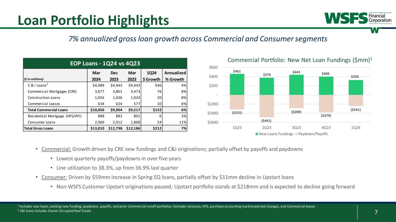 •Gross loan growth of 2% (7% annualized) from 4Q 2023 driven primarily by growth across the commercial portfolio and our consumer partnership with Spring EQ (home equity loans).