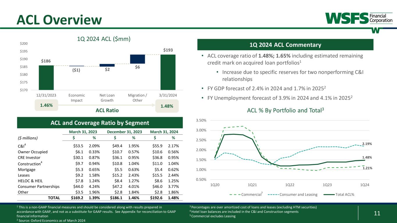 "Overall asset quality metrics remained stable and included reductions in both NPAs and net charge-offs. In light of the continued uncertain economic and interest rate environment, we remain very focused on prudently strengthening our balance sheet. This includes ongoing proactive credit risk management and a continued build of our ACL reserves which stood at 1.48% of total loans and leases at quarter end. Bank capital levels remain strong with CET1 at 14.00% and total risk based capital at 15.25% and above "well-capitalized" including the full impact of AOCI.