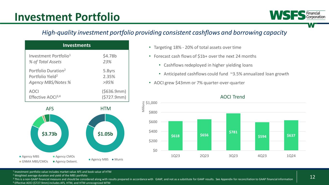 "During the quarter, we were honored to be named a recipient of both the Gallup Exceptional Workplaces for the eighth time since 2016 and Forbes America's Best Banks 2024. These recognitions are a direct result of our over 2,200 associates who continue to live our mission of 'We Stand for Service'."
