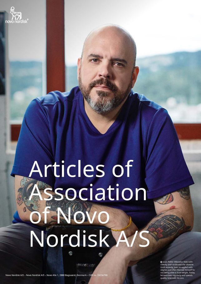 Articles of Association of Novo Nordisk A/S Novo Nordisk A/S – Novo Nordisk A/S – Novo Alle 1, 2880 Bagsværd, Denmark – CVR no. 24256790 Juan Pablo Villaseñor lives with obesity and cardiovascular disease. Until recently, Juan struggled with stigma and often blamed himself for not being able to lose weight. Today, he exercises regularly and spends quality time with his son.