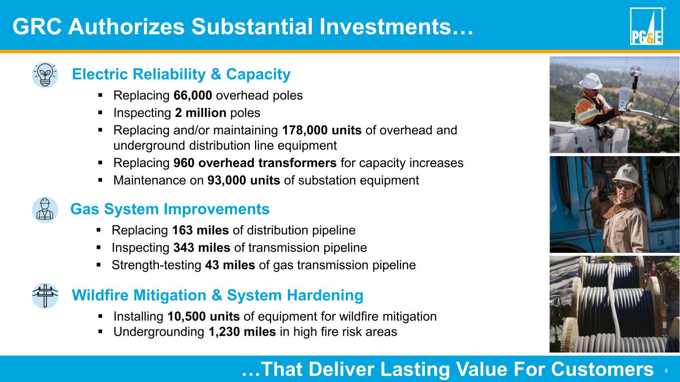 “Our focus on safety and reducing wildfire risk continues every day as we deliver for our customers and our hometowns here in California. We remain committed to building a clean, climate-resilient energy system to meet our customers’ future needs at the lowest price for them,” said PG&E Corporation CEO Patti Poppe.