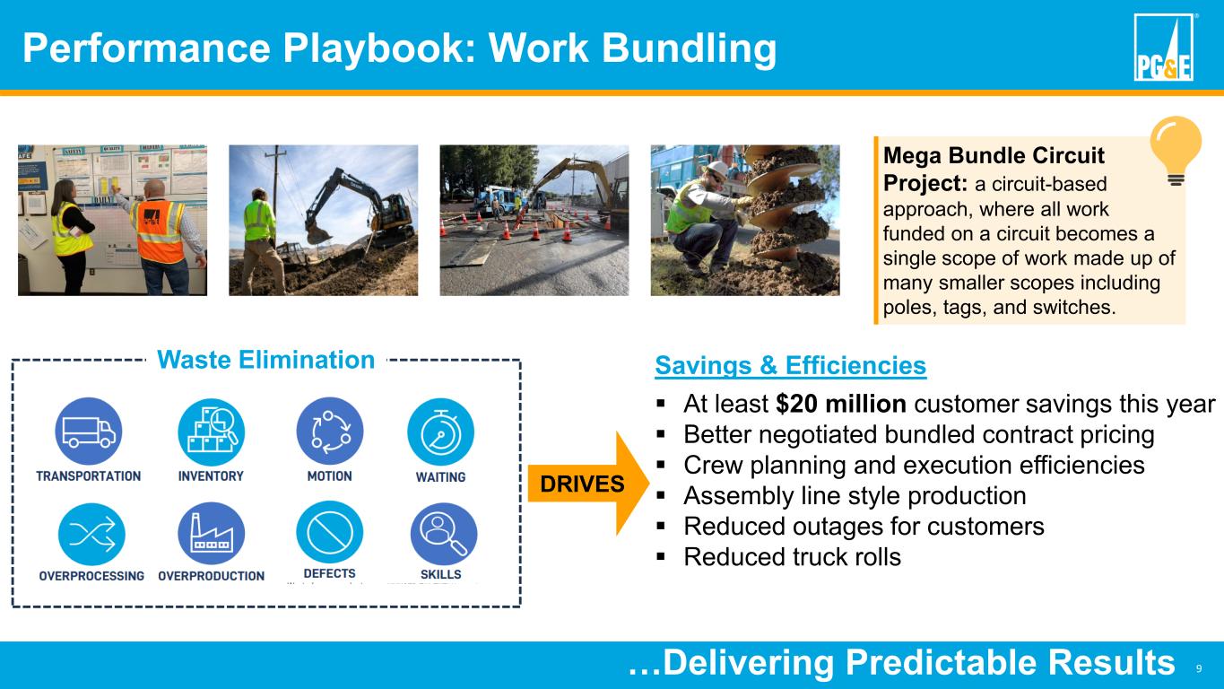 9 Performance Playbook: Work Bundling …Delivering Predictable Results Savings & Efficiencies ▪ At least $20 million customer savings this year ▪ Better negotiated bundled contract pricing ▪ Crew planning and execution efficiencies ▪ Assembly line style production ▪ Reduced outages for customers ▪ Reduced truck rolls Mega Bundle Circuit Project: a circuit-based approach, where all work funded on a circuit becomes a single scope of work made up of many smaller scopes including poles, tags, and switches. Waste Elimination DRIVES