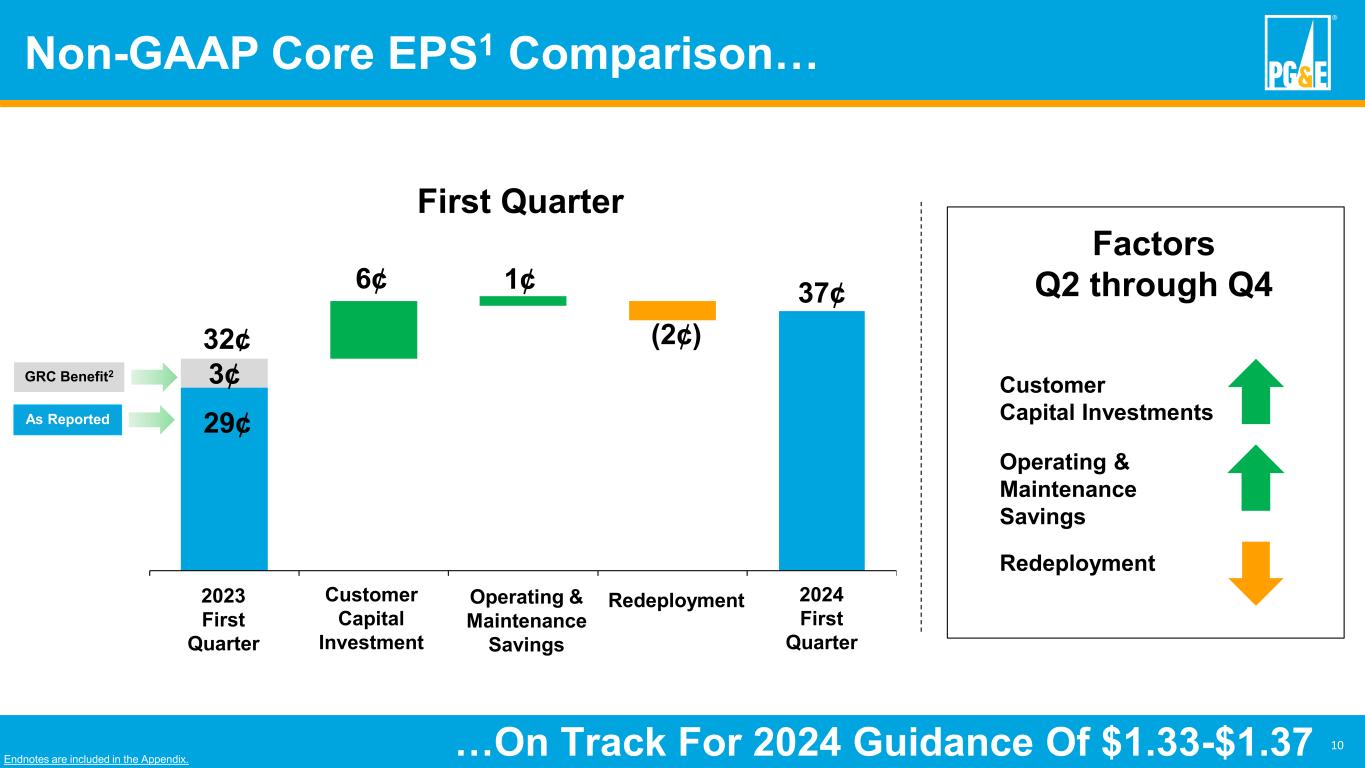 The increase in GAAP results is primarily driven by an increase in customer capital investment, as approved in the 2023 General Rate Case final decision and which earns an equity return as approved in the Automatic Cost of Capital Adjustment Mechanism Advice Letter. Other drivers include non-fuel operating and maintenance (O&M) savings achieved for the first quarter, net of