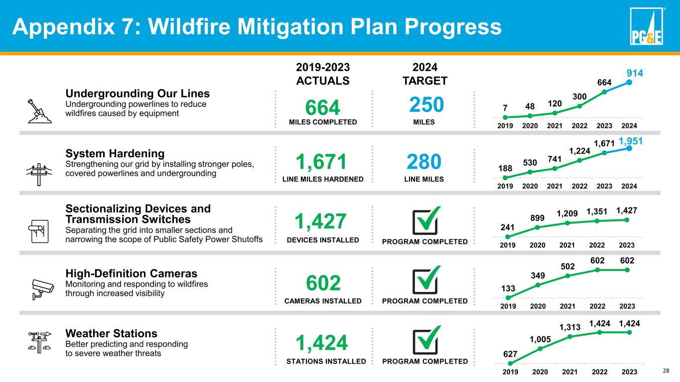 •Energized 15 miles of underground powerlines in the highest fire threat areas, adding to the 664 completed 2019 through 2023.