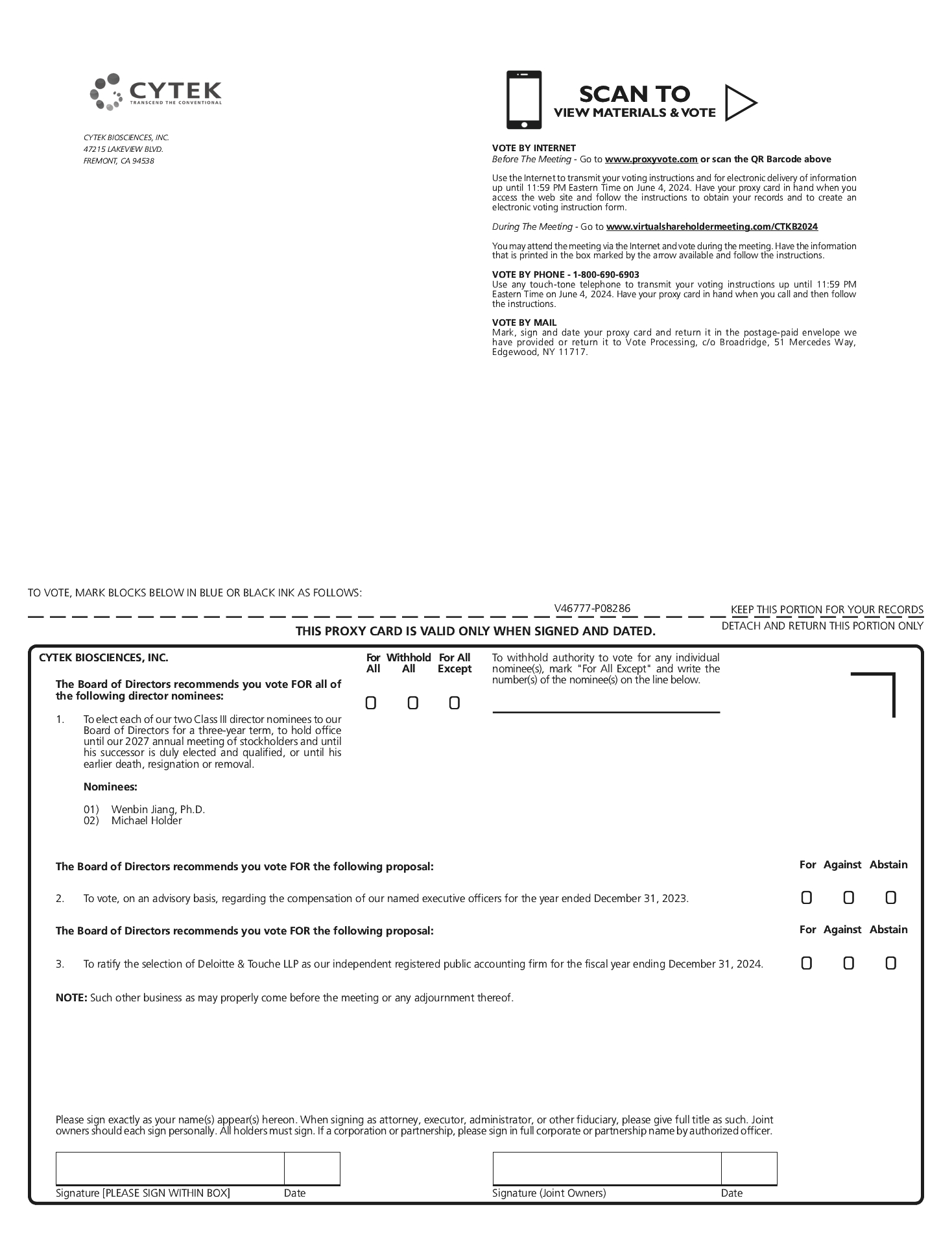 • | You may send a timely written notice that you are revoking your proxy to our Corporate Secretary at Cytek Biosciences, Inc., 47215 Lakeview Boulevard, Fremont, California 94538, Attention: Corporate Secretary. |