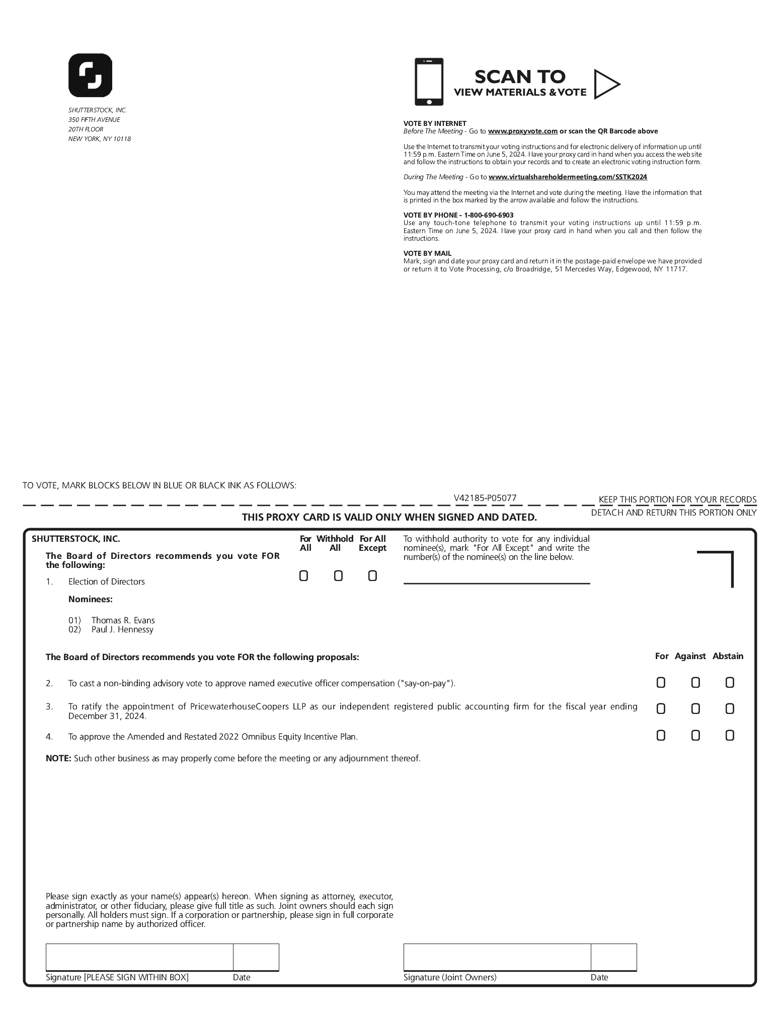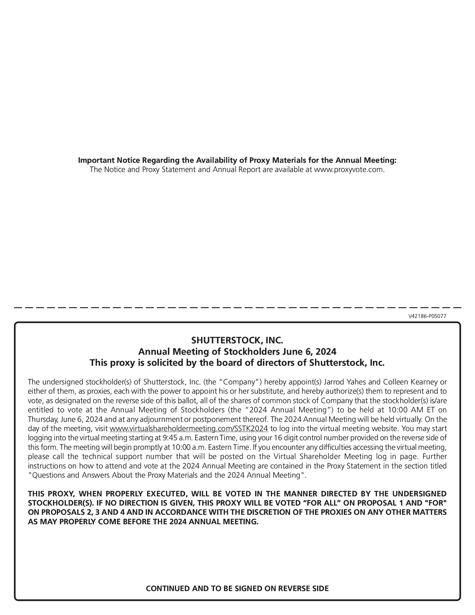 Record Date: | | | You are entitled to vote only if you were a holder of common stock, $0.01 par value per share (“Common Stock”) of Shutterstock, Inc. as of April 8, 2024. |