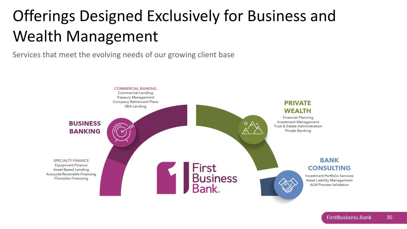 FirstBusiness.Bank30 Offerings Designed Exclusively for Business and Wealth Management Services that meet the evolving needs of our growing client base