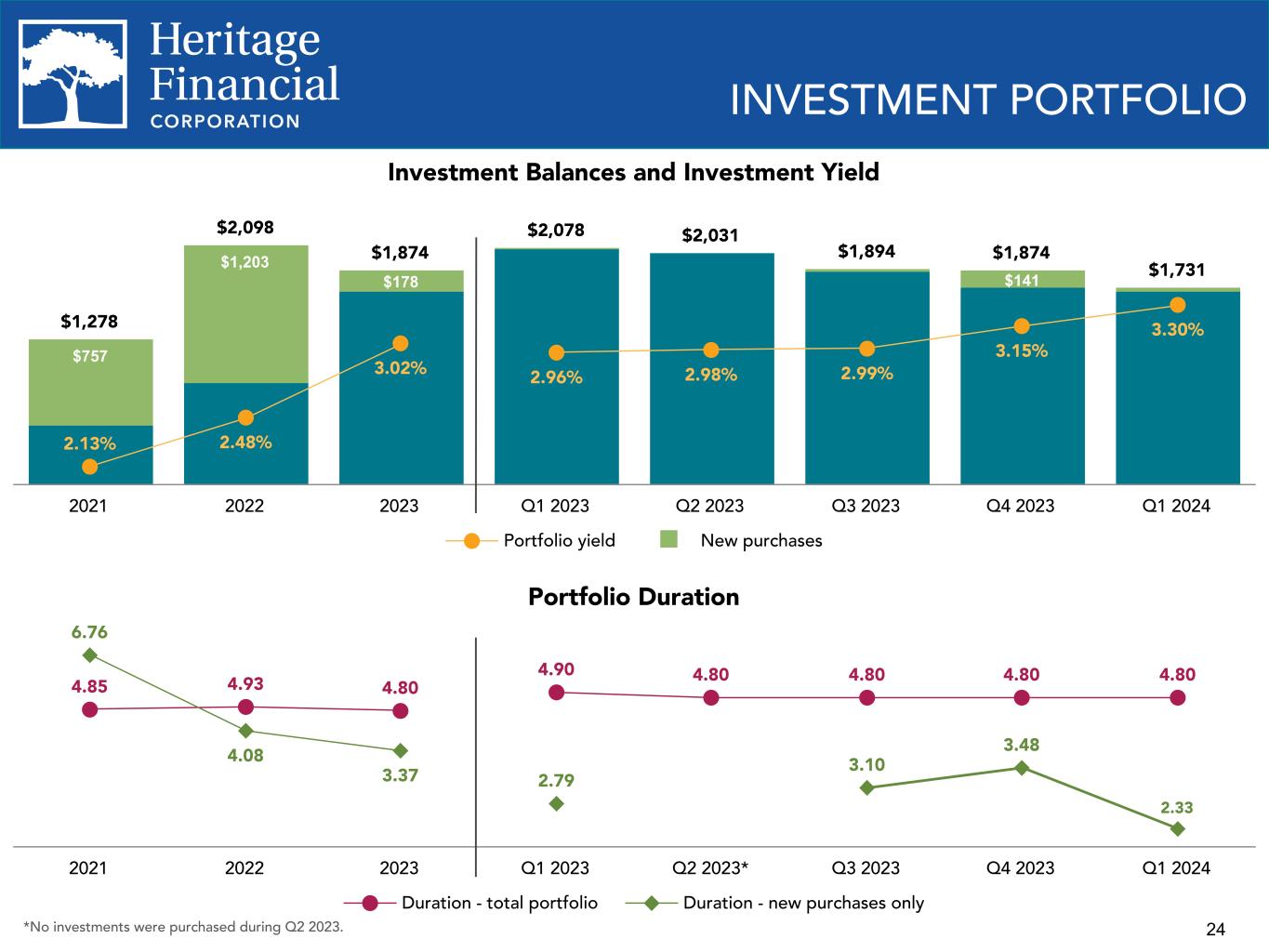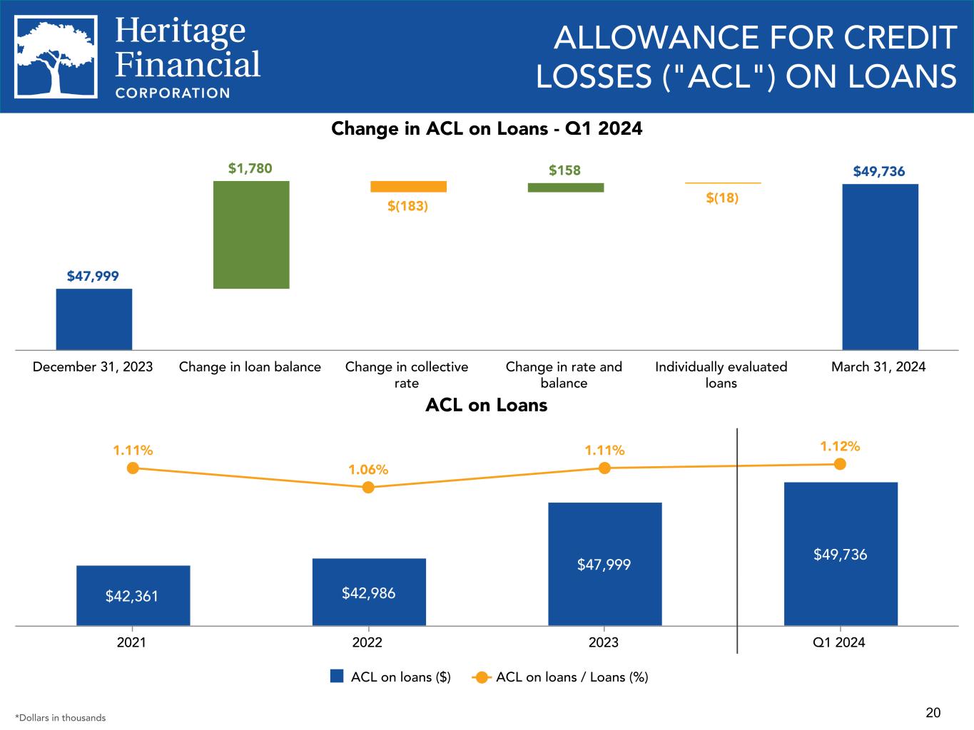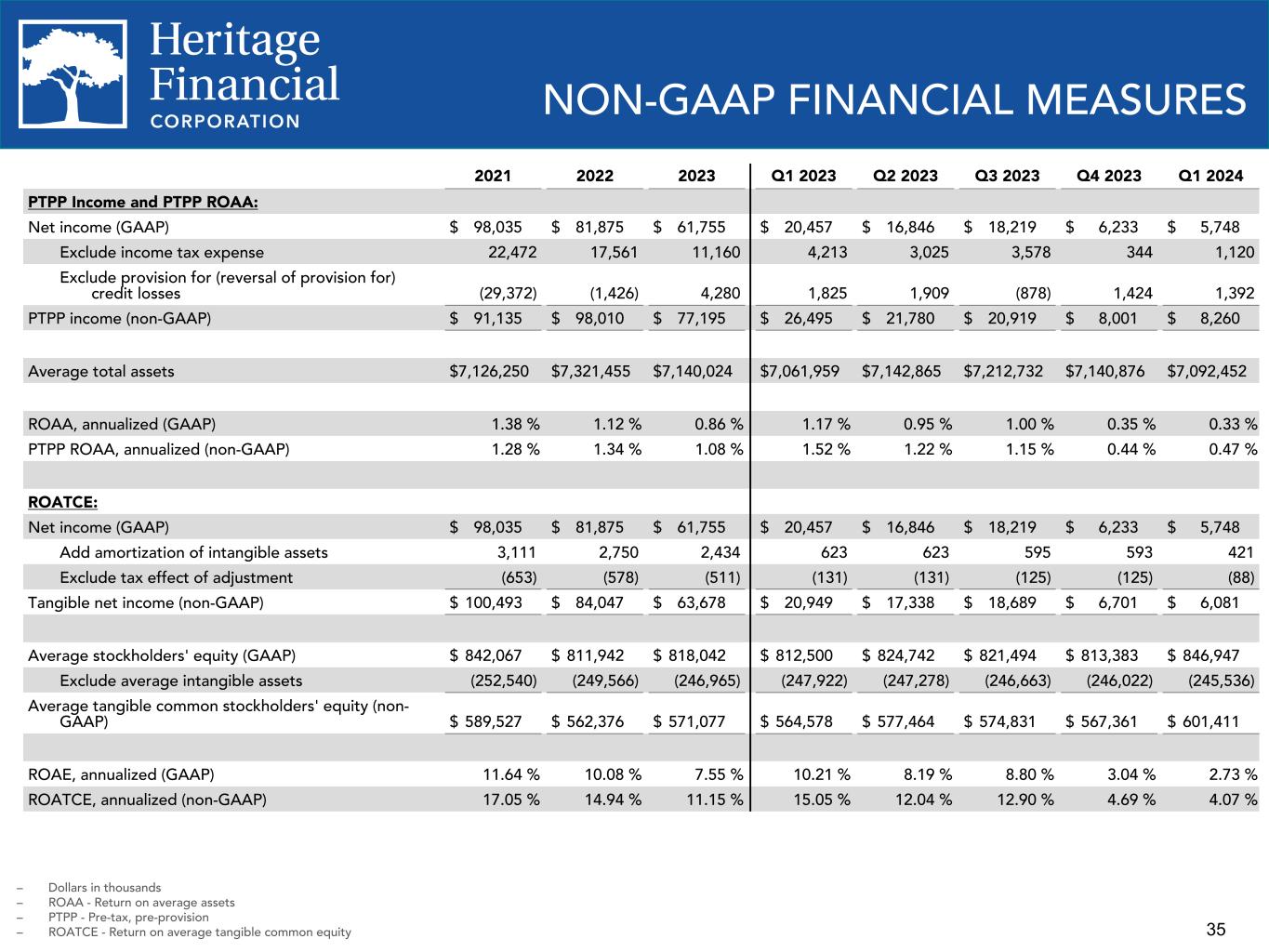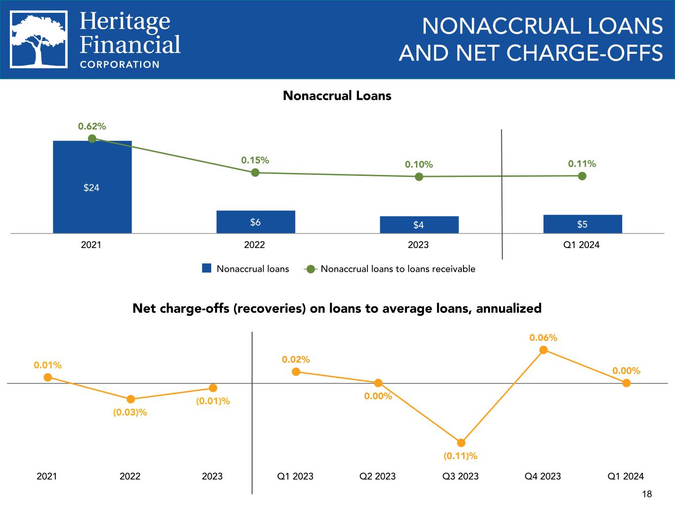 HERITAGE FINANCIAL ANNOUNCES FIRST QUARTER 2024 RESULTS AND DECLARES REGULAR CASH DIVIDEND