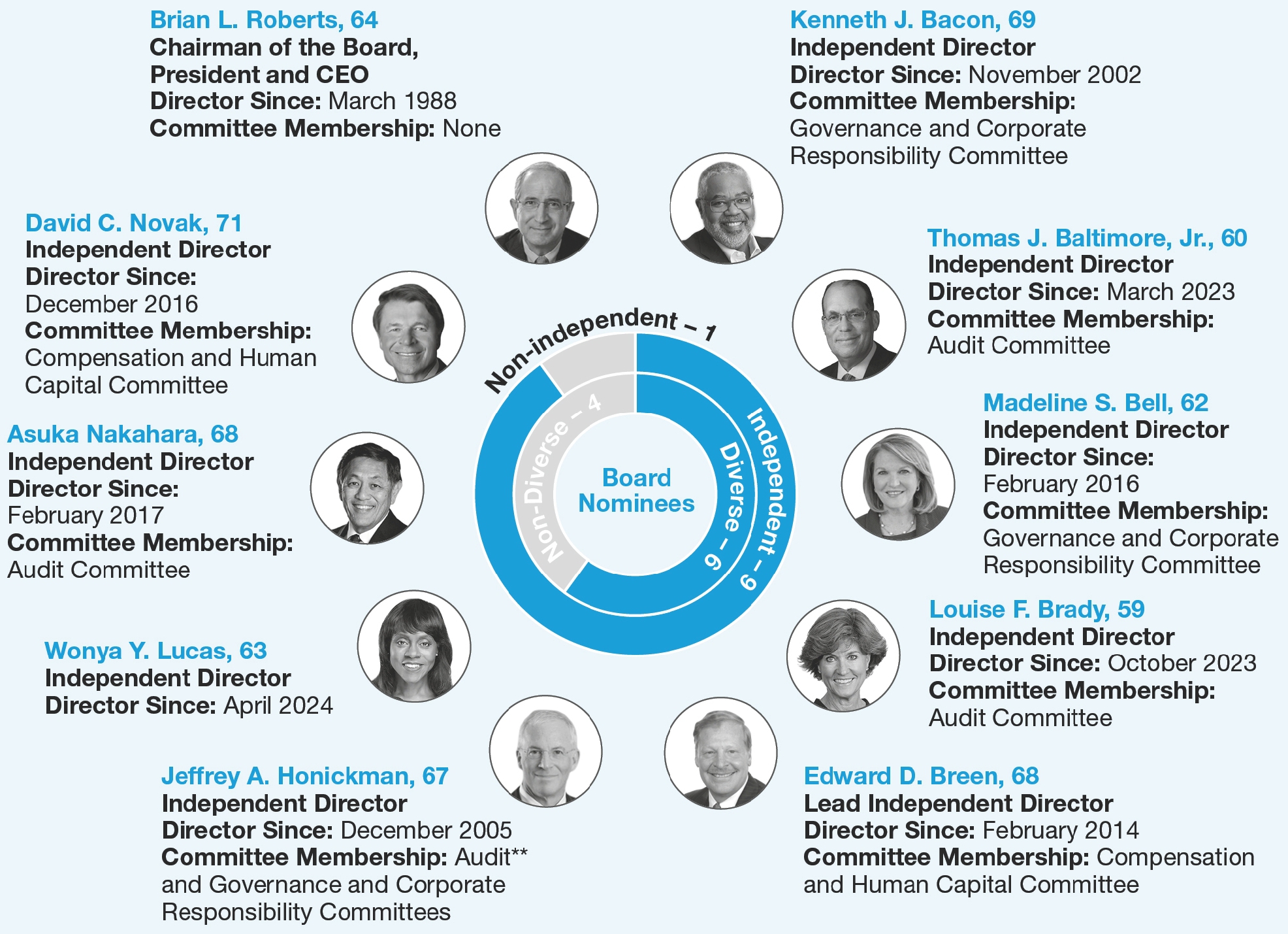 06 - Jeffrey A. Honickman 07 - Wonya Y. Lucas 08 - Asuka Nakahara 09 - David C. Novak 10 - Brian L. Roberts |