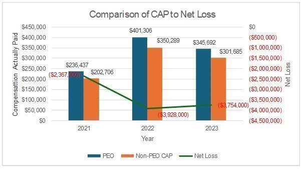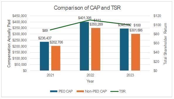 As an exploration company, Solitario does not have consistent sources of revenues and our goals and objectives are more closely aligned with the success of our exploration activities including acquisition and exploration of mineral claims as further discussed above in our Compensation Discussion and Analysis. We believe the changes in both CAP and TSR shown in the above chart are more closely related to the success of our exploration activities, especially at our Golden Crest project as well as general junior mining industry trends for stock appreciation and declines during 2023, 2022 and 2021 than to each other or other financial metrics.