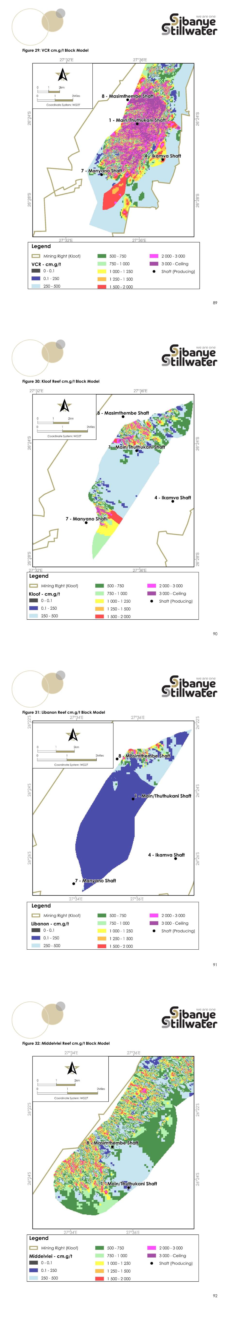 89 Figure 29: VCR cm.g/t Block Model 90 Figure 30: Kloof Reef cm.g/t Block Model 91 Figure 31: Libanon Reef cm.g/t Block Model 92 Figure 32: Middelvlei Reef cm.g/t Block Model